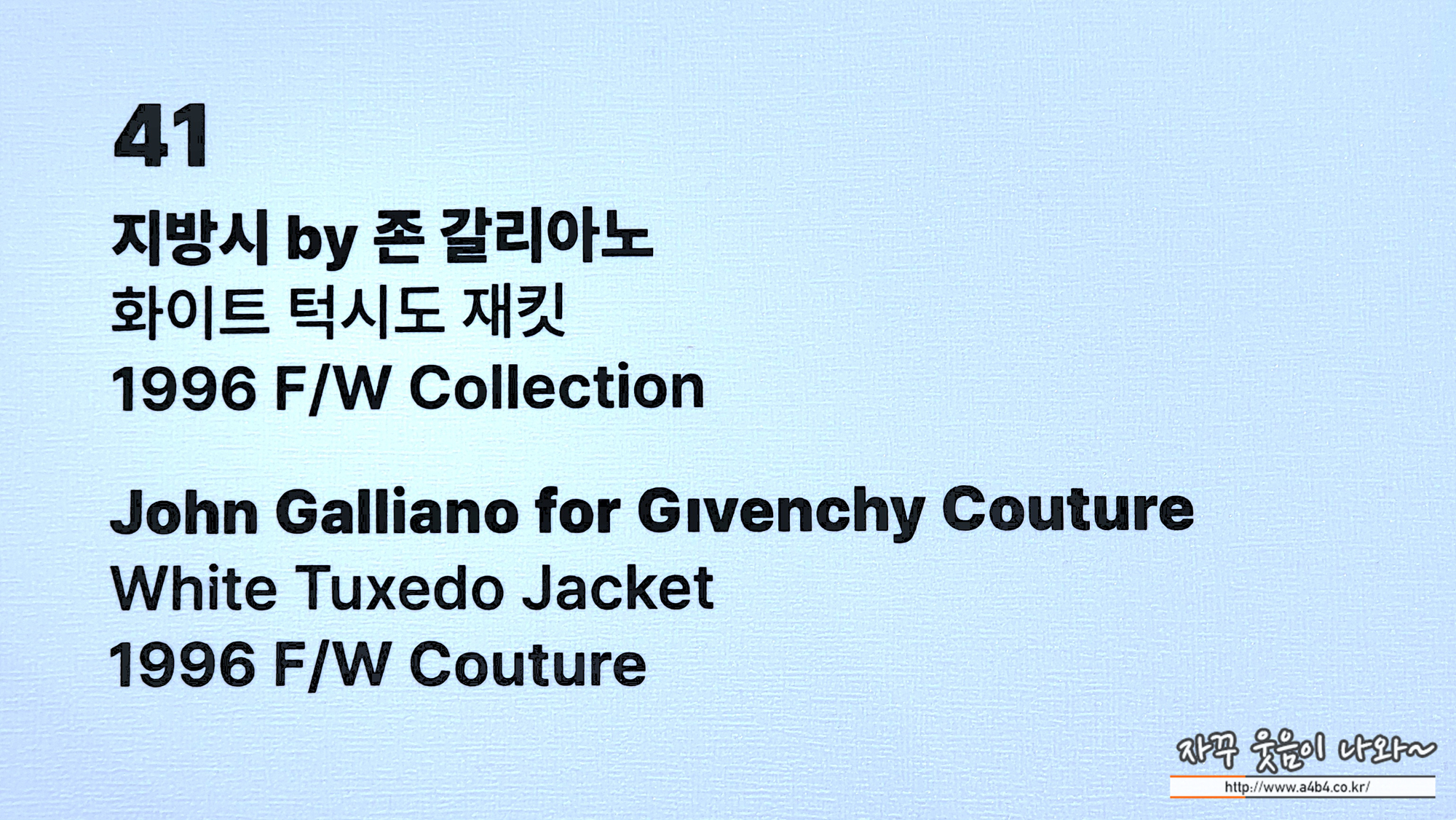 패션계 인물들의 인터뷰도 만날 수 있습니다. 모델 박성진, 패션 디자이너 진태옥 등이 이번 전시를 위해 디자이너를 비롯해 여러 브랜드와 함께한 특별한 순간들을 이야기합니다. 현 대한민국 패션계 거장들이 세계 유명 패션 디자이너를 평가하는 아주 흥미로운 인터뷰 형식의 영상들