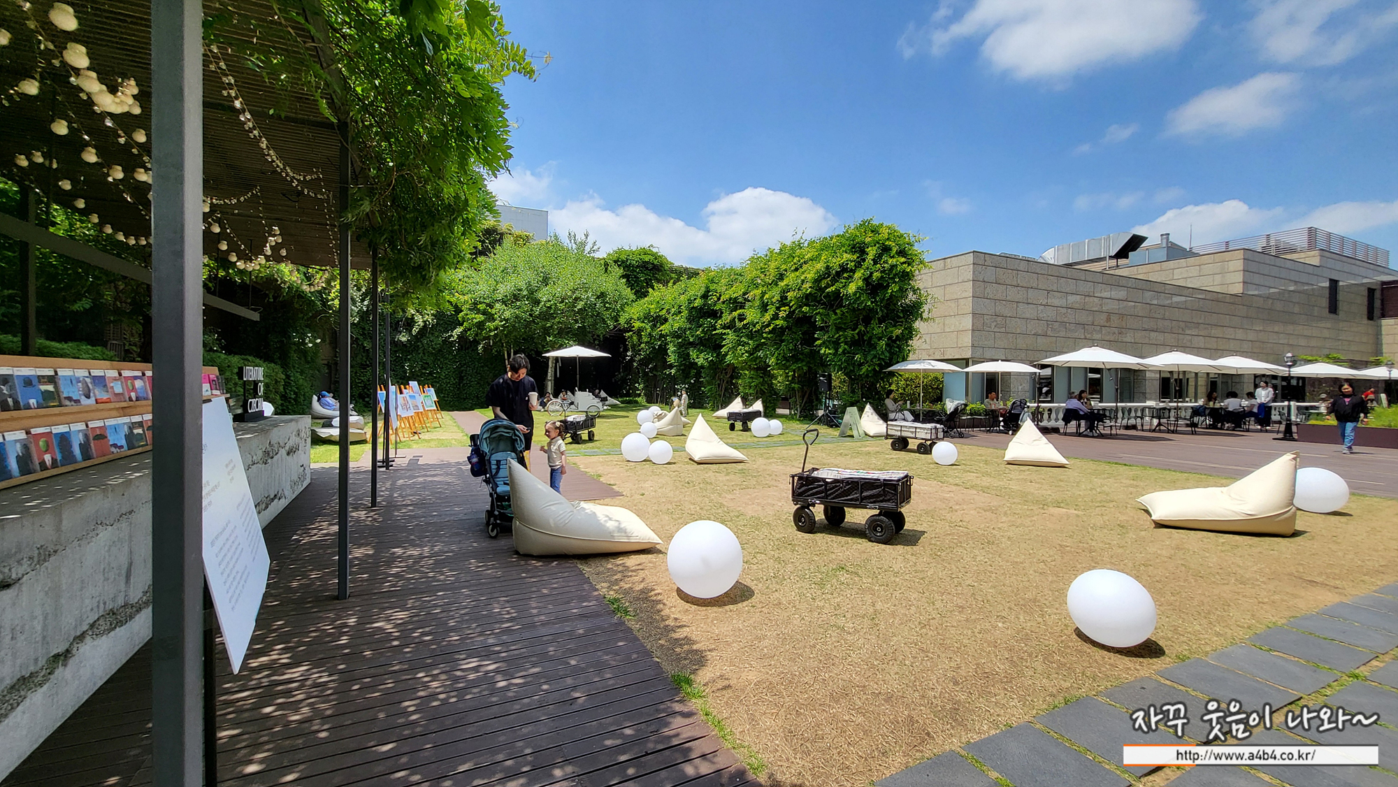 이 두 유명 작가의 작품들을 만나볼 수 있고요. 잔디광장 의자에 앉아서 책을 읽어볼 수 있습니다.