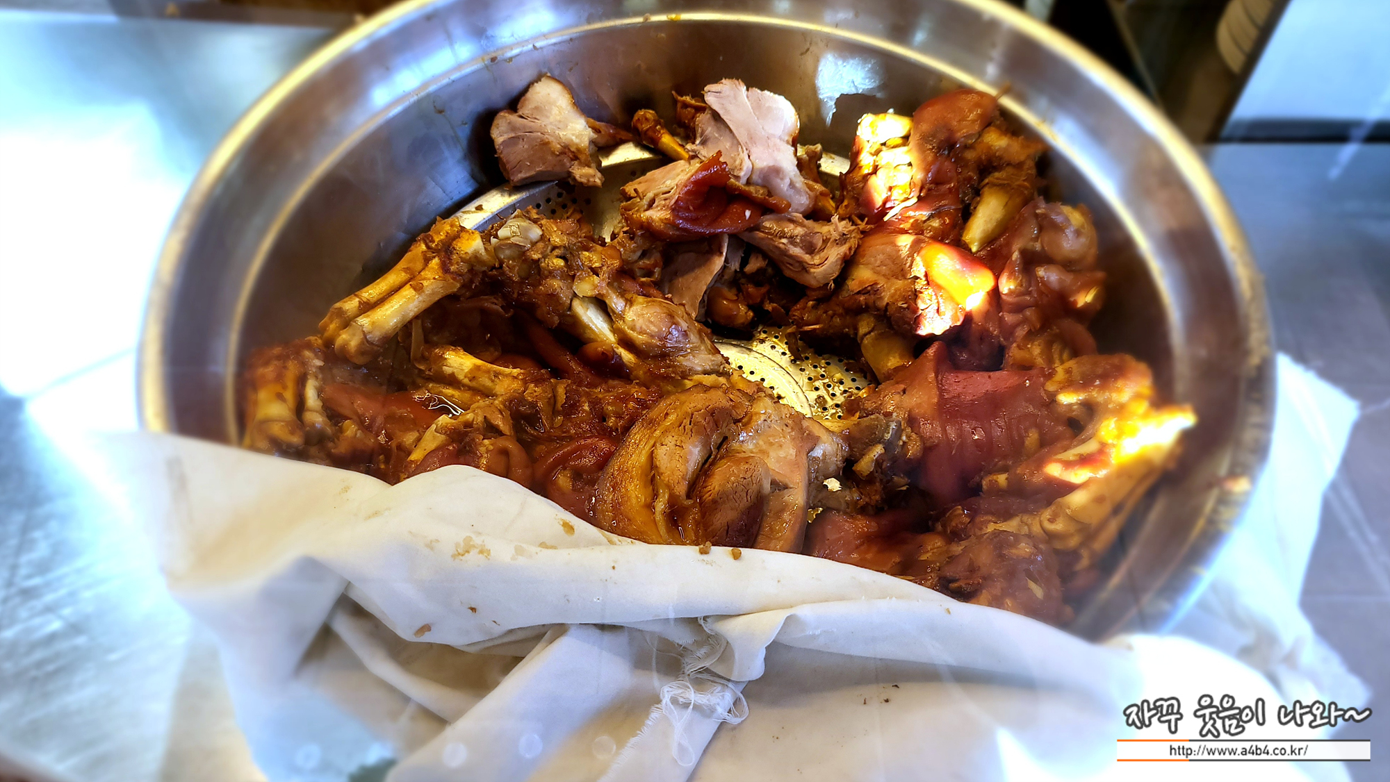 역시나 모든 족발집의 공통점, 아래에는 큰 뼈다귀 하나 깔려 있고요.
