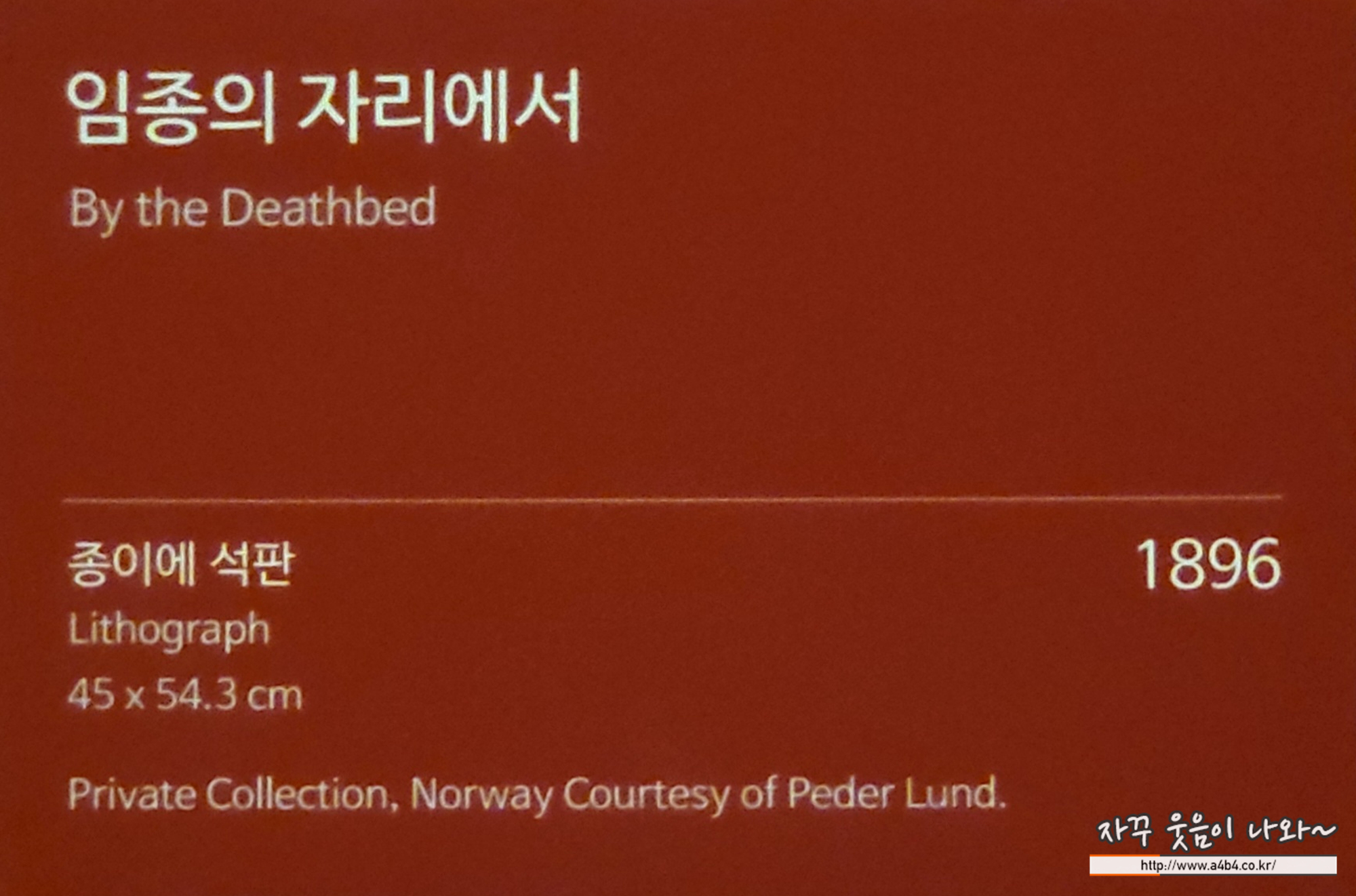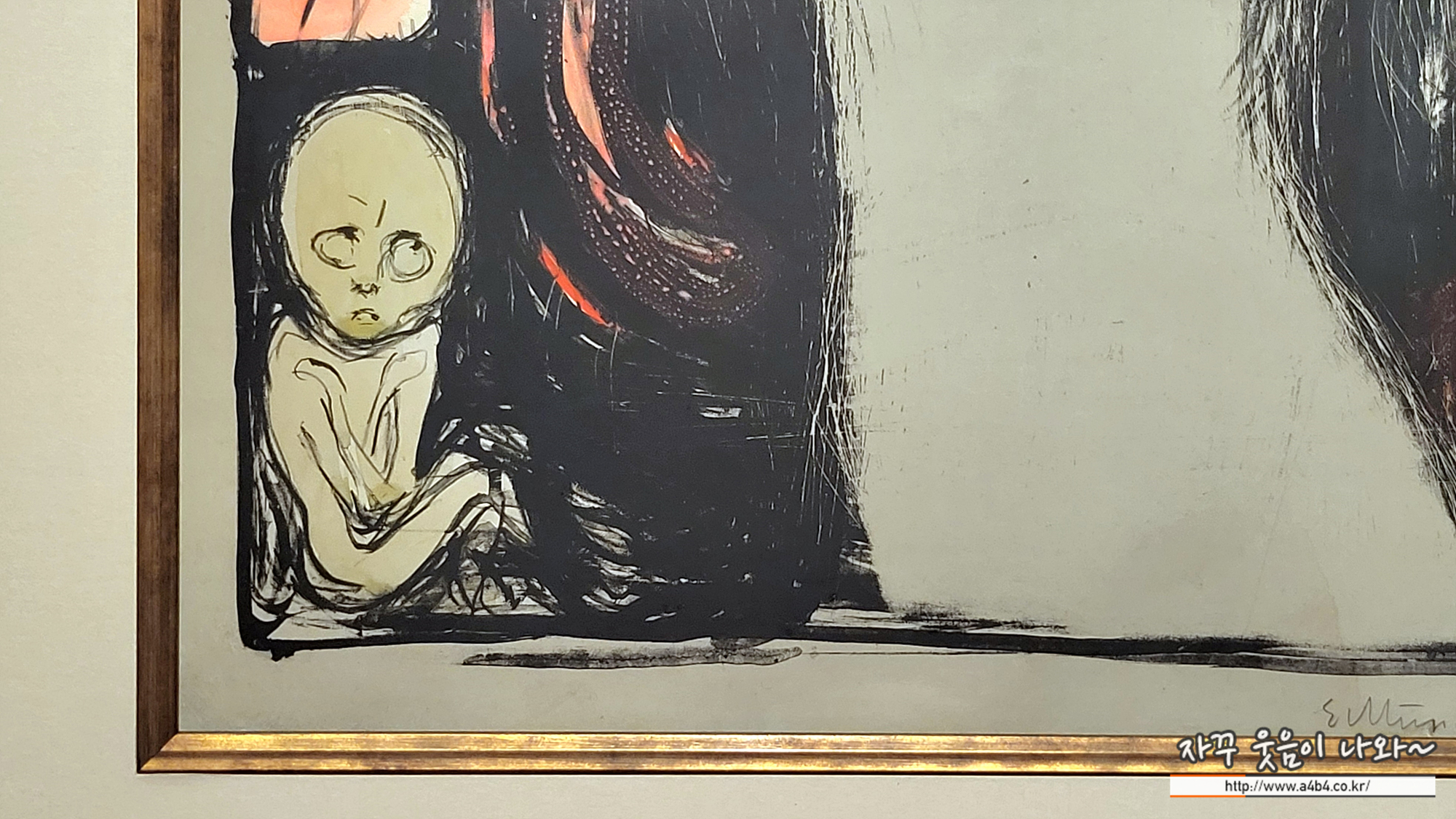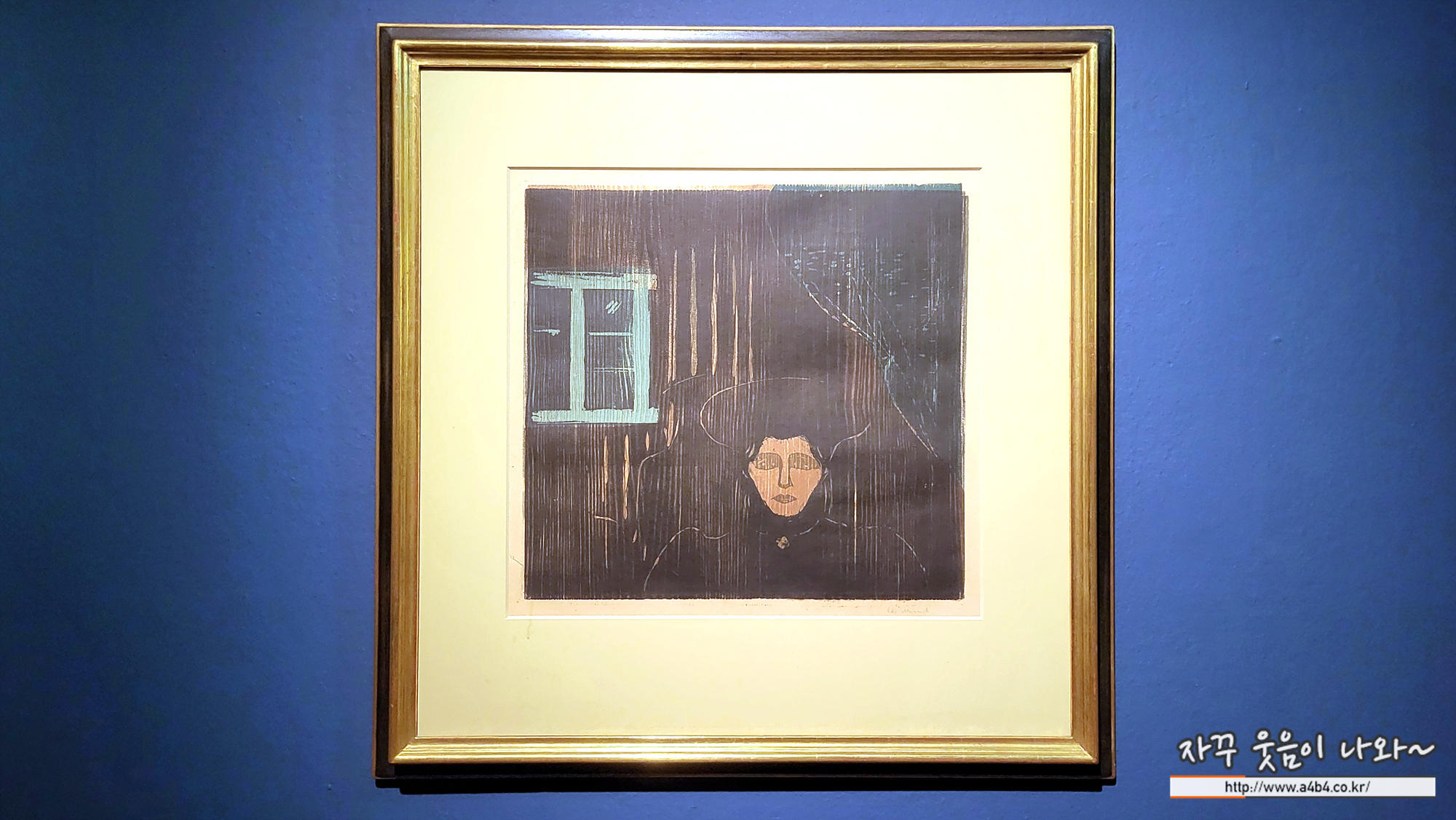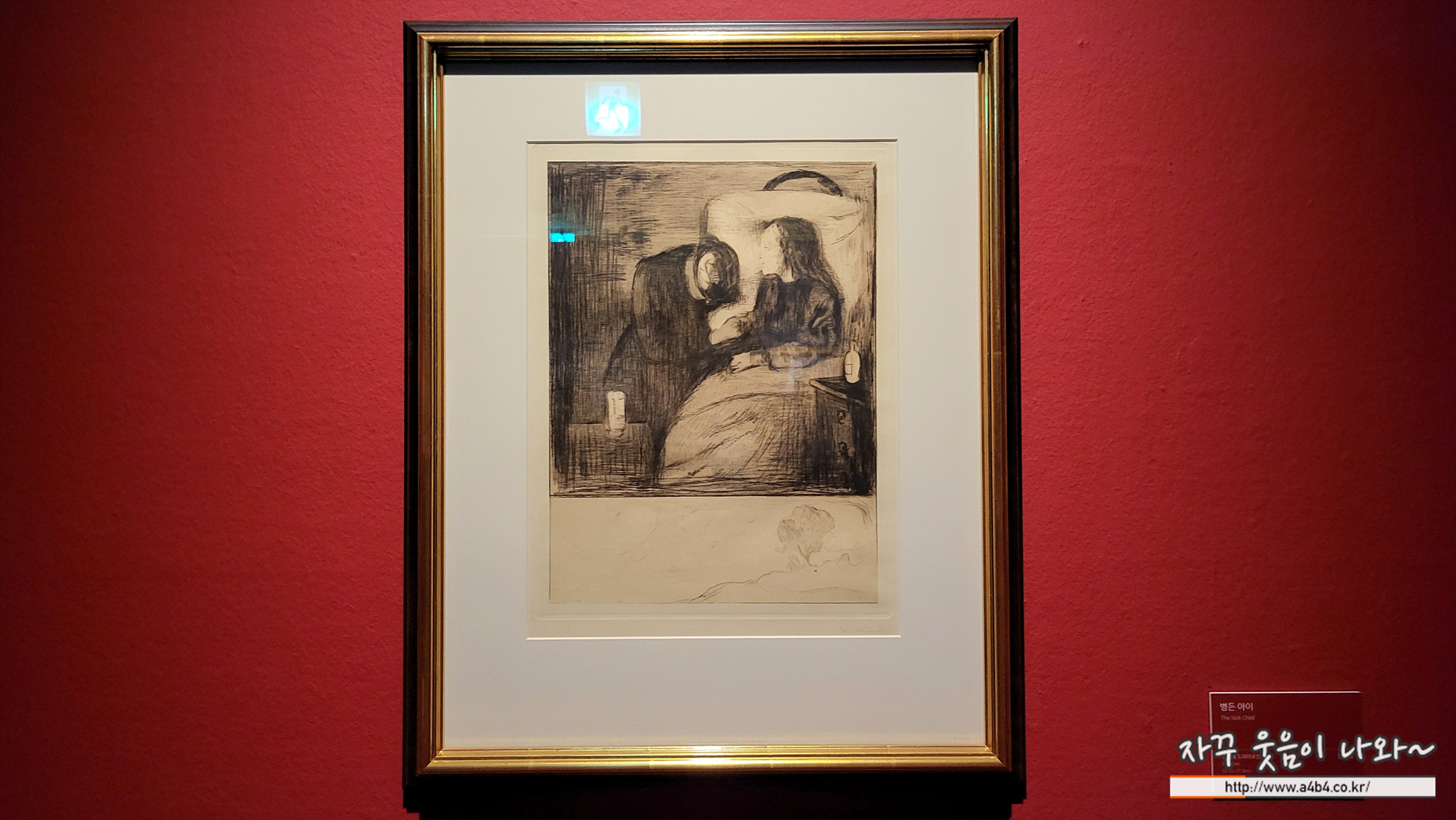 동일한 제목으로 뭉크의 여러 작품들이 전시되어 있는데, 이번 전시회에서 상당히 매력적인 작품이다. 전시회 뒷 부분 '공포와 죽음' 섹션에서는 해당 작품에서 아이의 얼굴만 확대된 더 많고 강렬한 작품을 만나볼 수 있다.