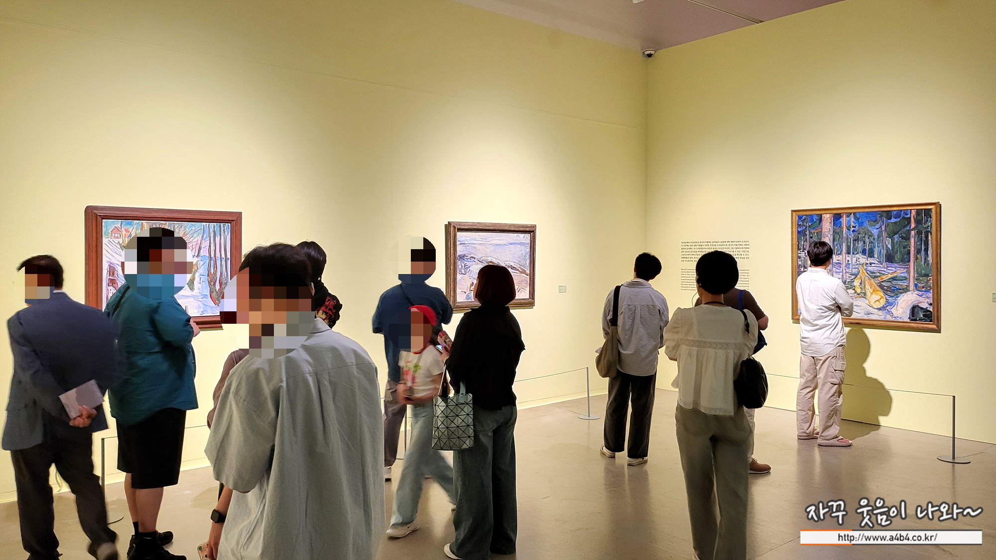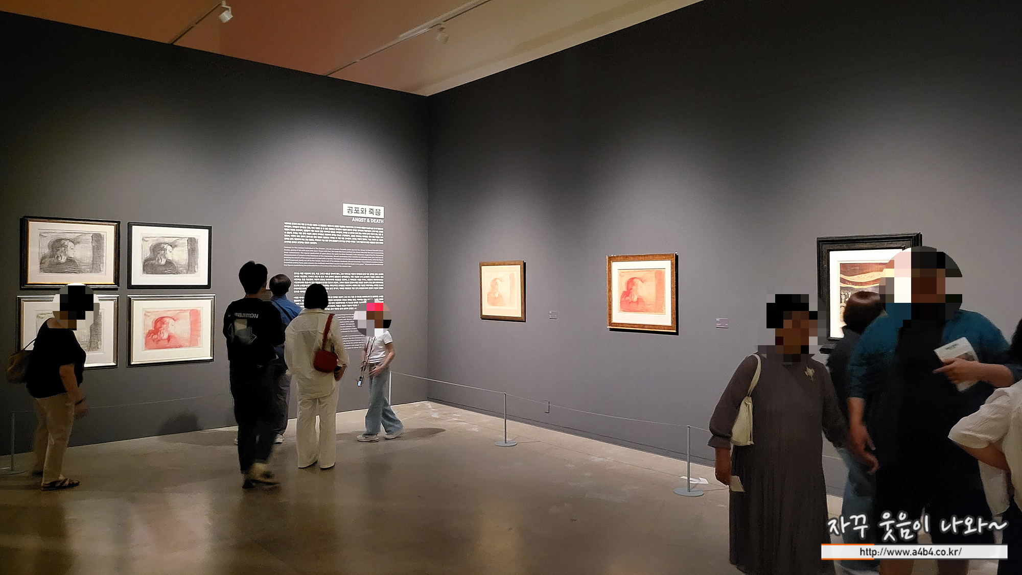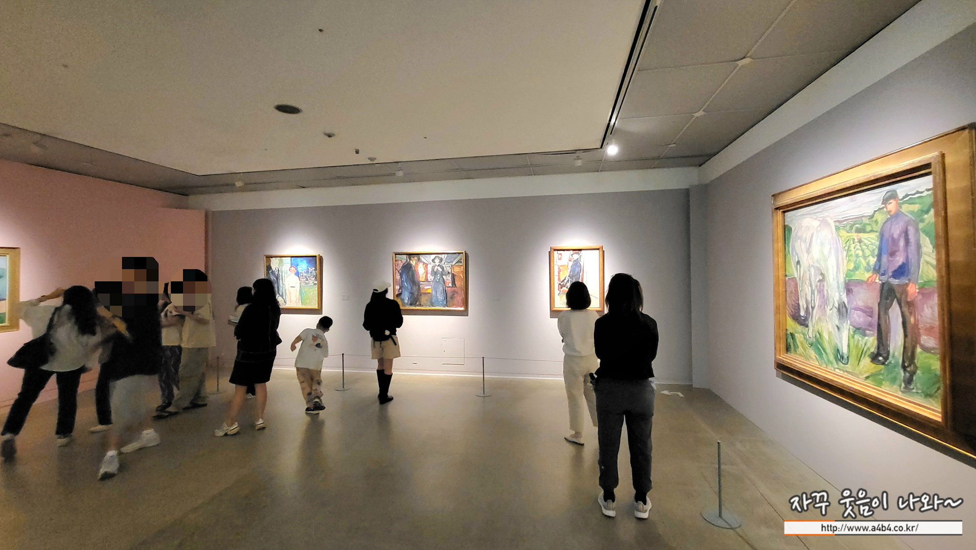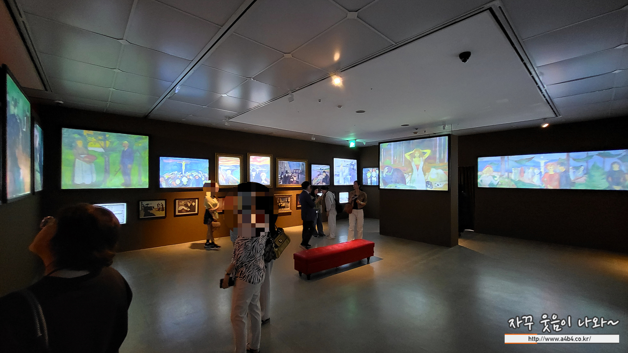 '에드바르 뭉크: 비욘드 더 스크림 전시회 실내' 주말이자 전시회 초기여서 그렇겠지만 관람객이 너무 많다. 뭐 얼리버드 티켓도 매수를 제한했고 입장객도 중간중간 제한한다고 하지만 작품보는 시간과 다음 작품으로 넘어가는 시간이 비슷 한 듯, 전시장 중반까지...