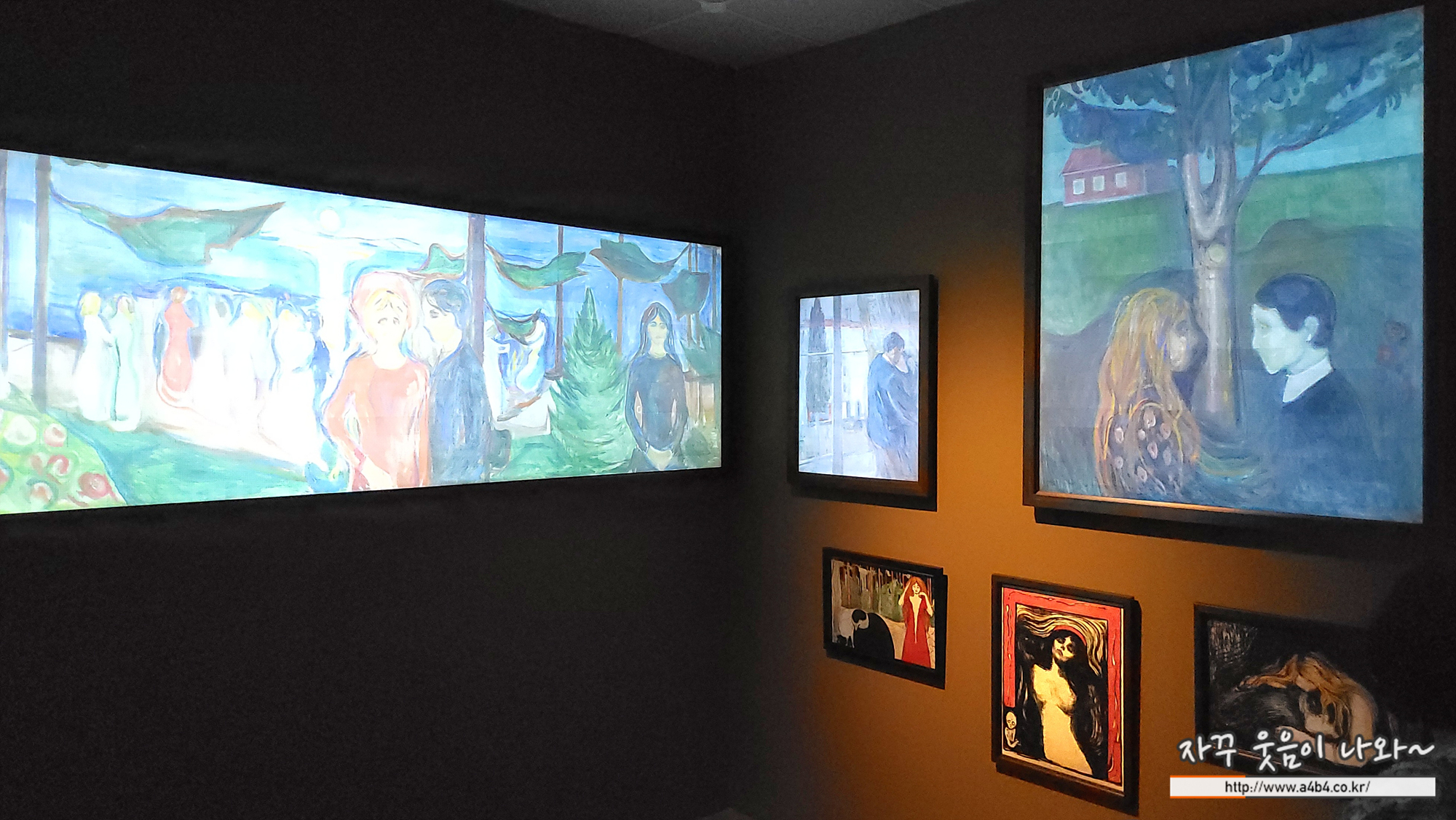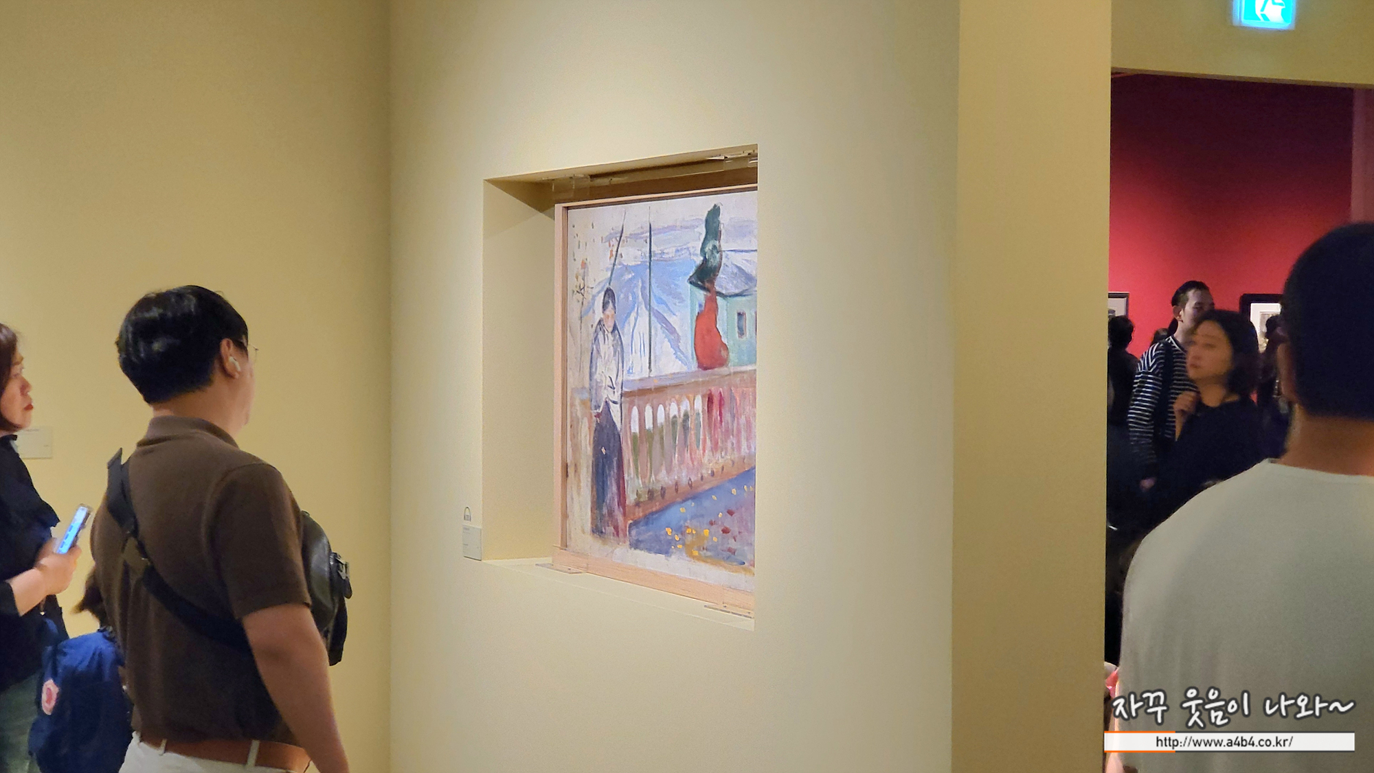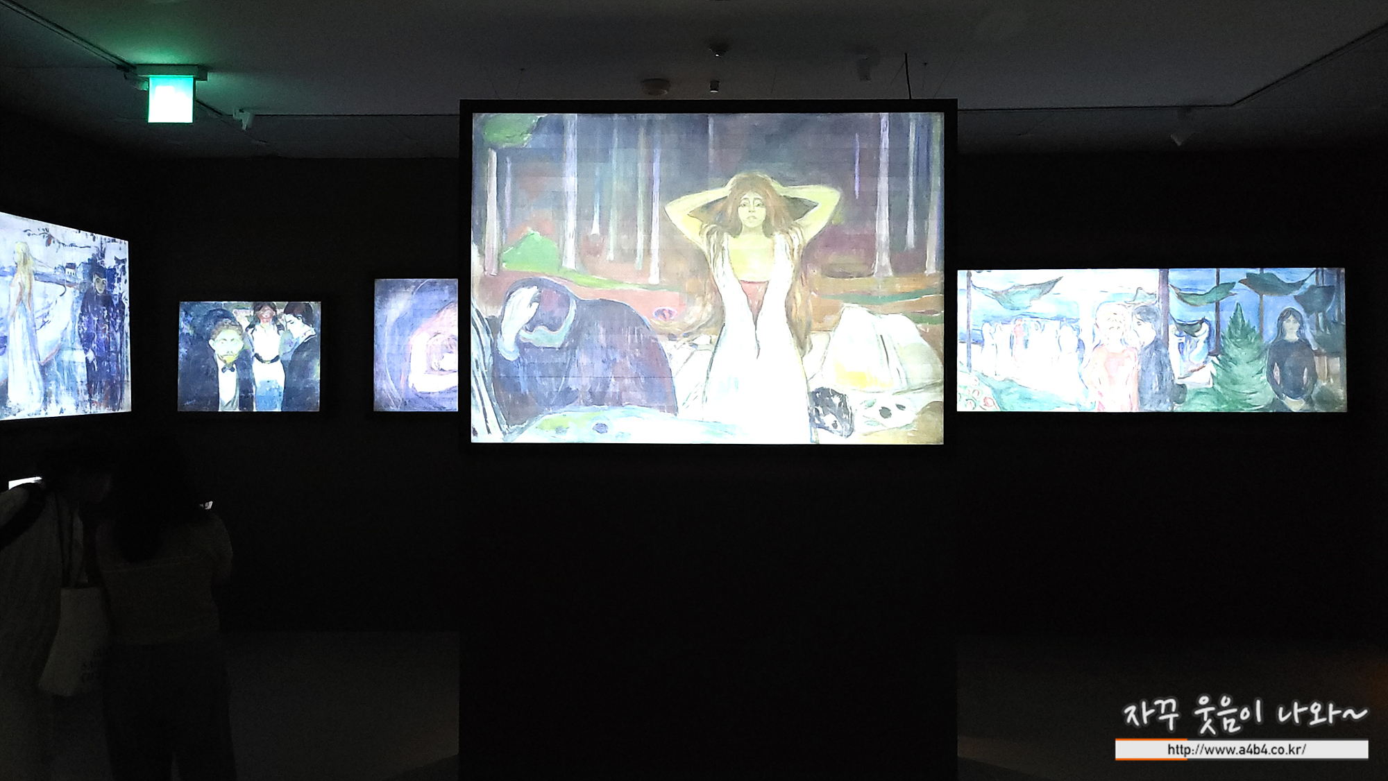 '에드바르 뭉크: 비욘드 더 스크림 전시회 실내' 주말이자 전시회 초기여서 그렇겠지만 관람객이 너무 많다. 뭐 얼리버드 티켓도 매수를 제한했고 입장객도 중간중간 제한한다고 하지만 작품보는 시간과 다음 작품으로 넘어가는 시간이 비슷 한 듯, 전시장 중반까지...