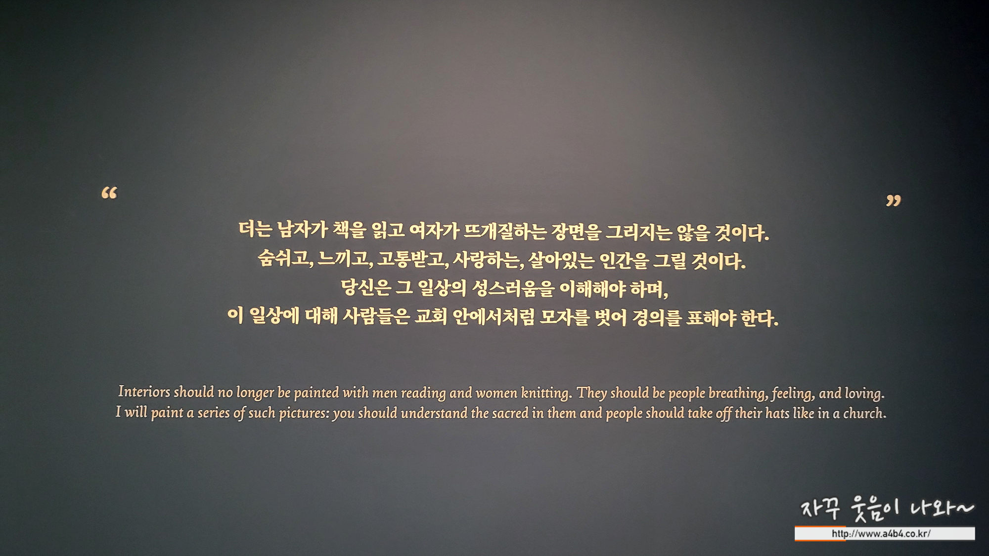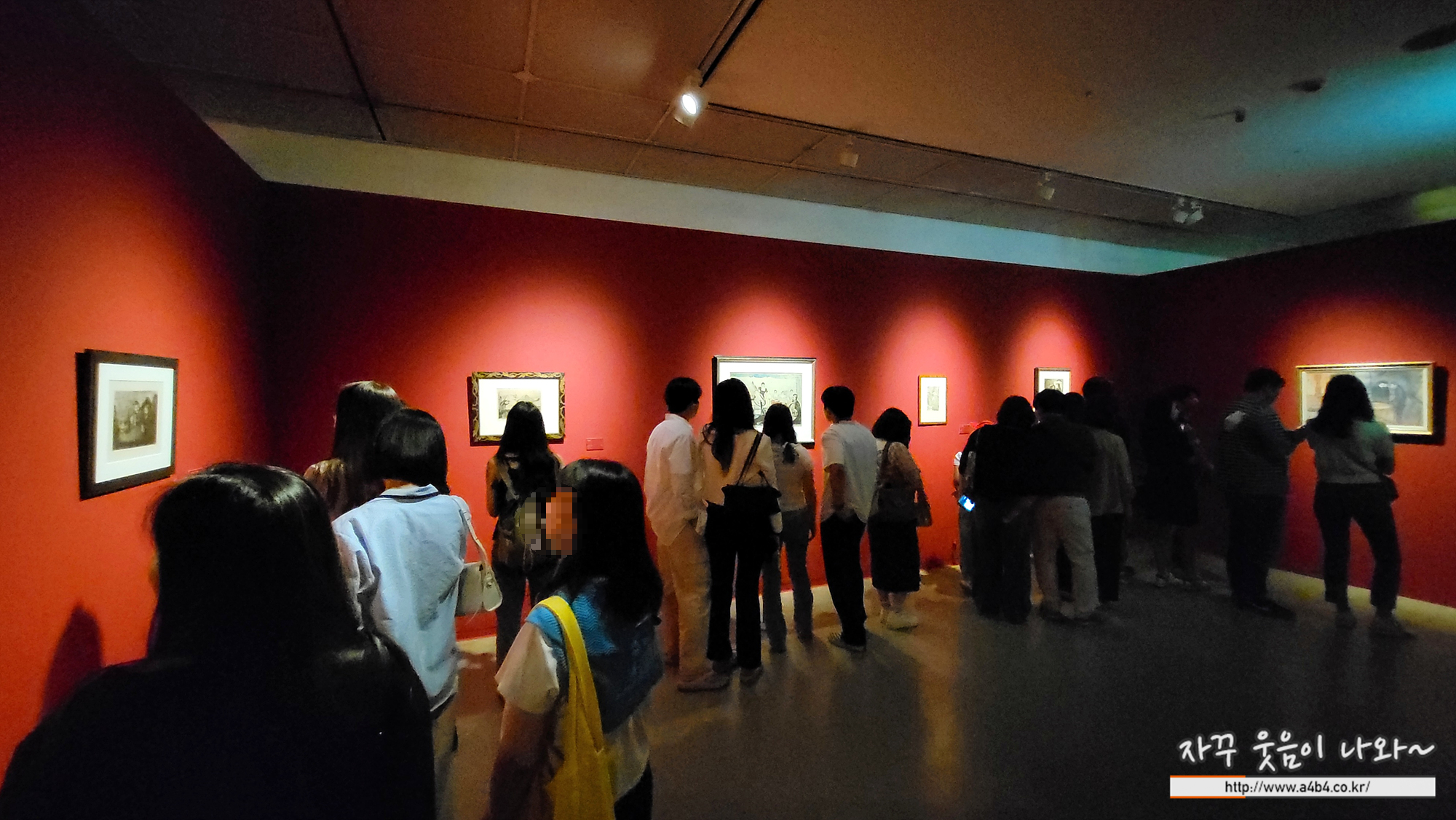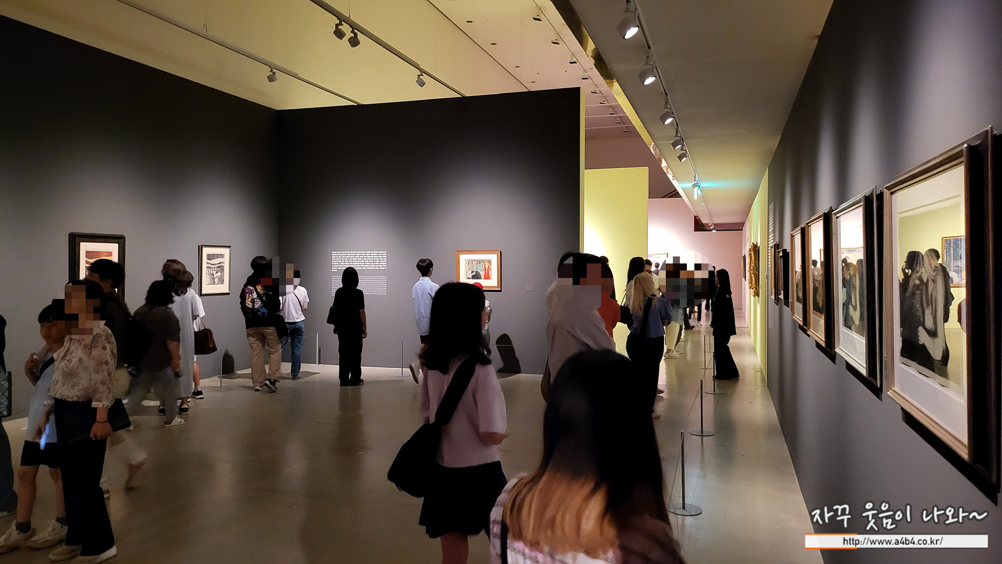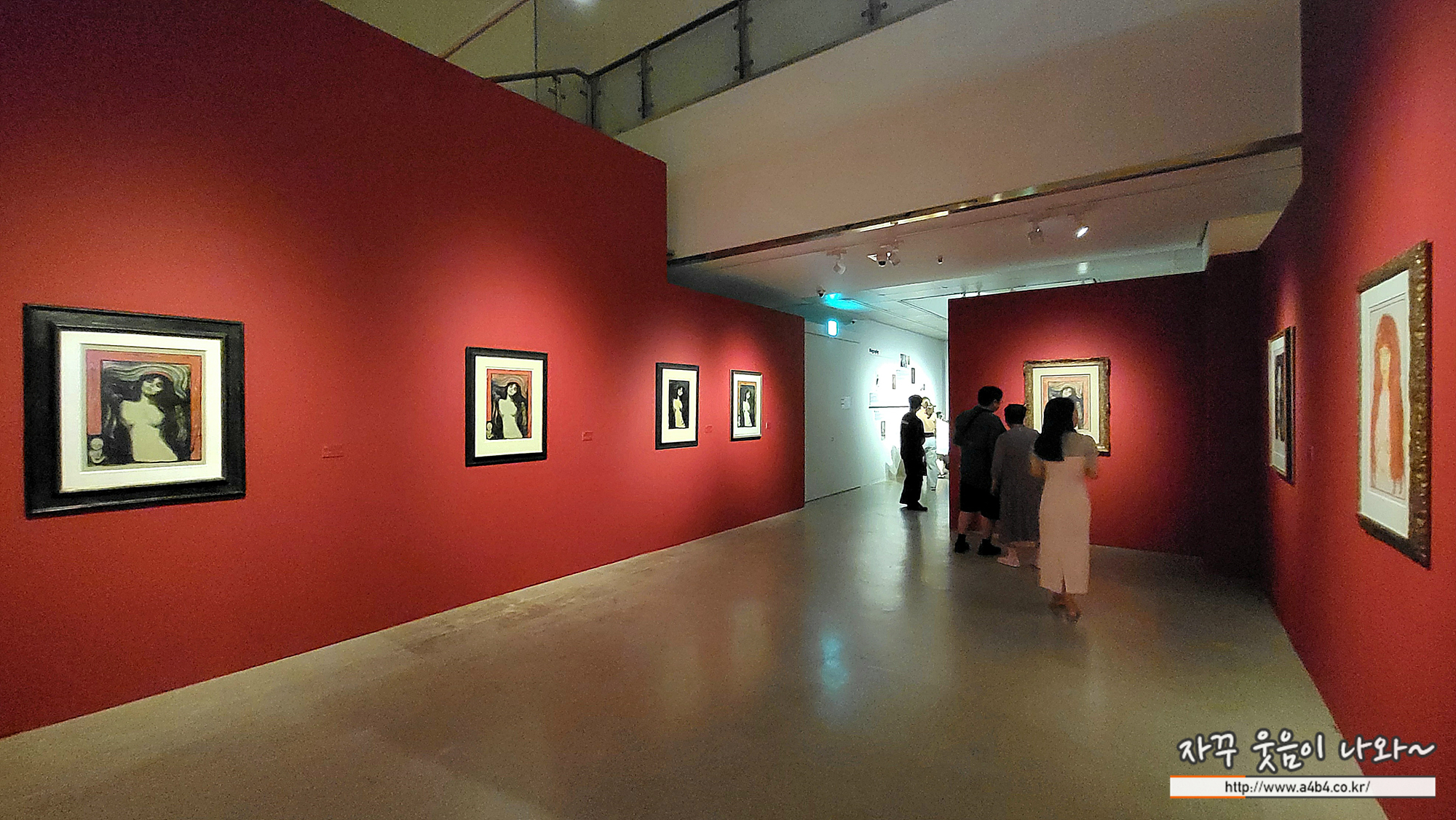 '에드바르 뭉크: 비욘드 더 스크림 전시회 실내' 주말이자 전시회 초기여서 그렇겠지만 관람객이 너무 많다. 뭐 얼리버드 티켓도 매수를 제한했고 입장객도 중간중간 제한한다고 하지만 작품보는 시간과 다음 작품으로 넘어가는 시간이 비슷 한 듯, 전시장 중반까지...
