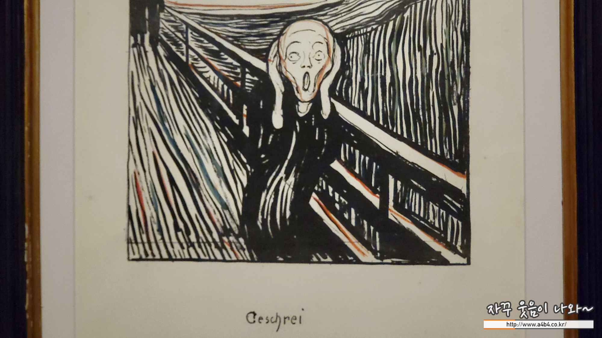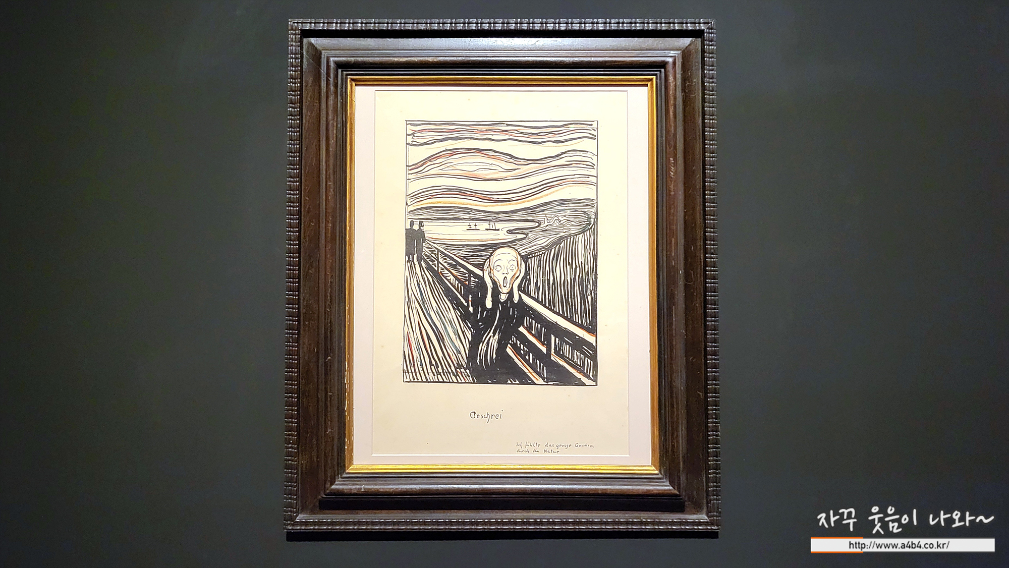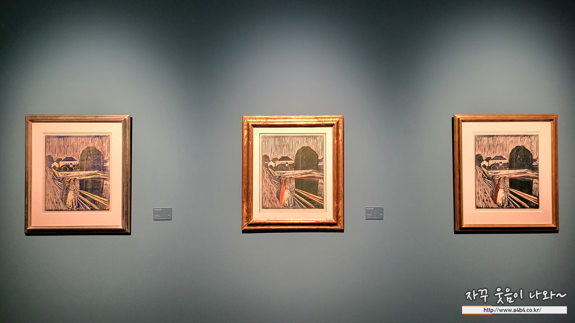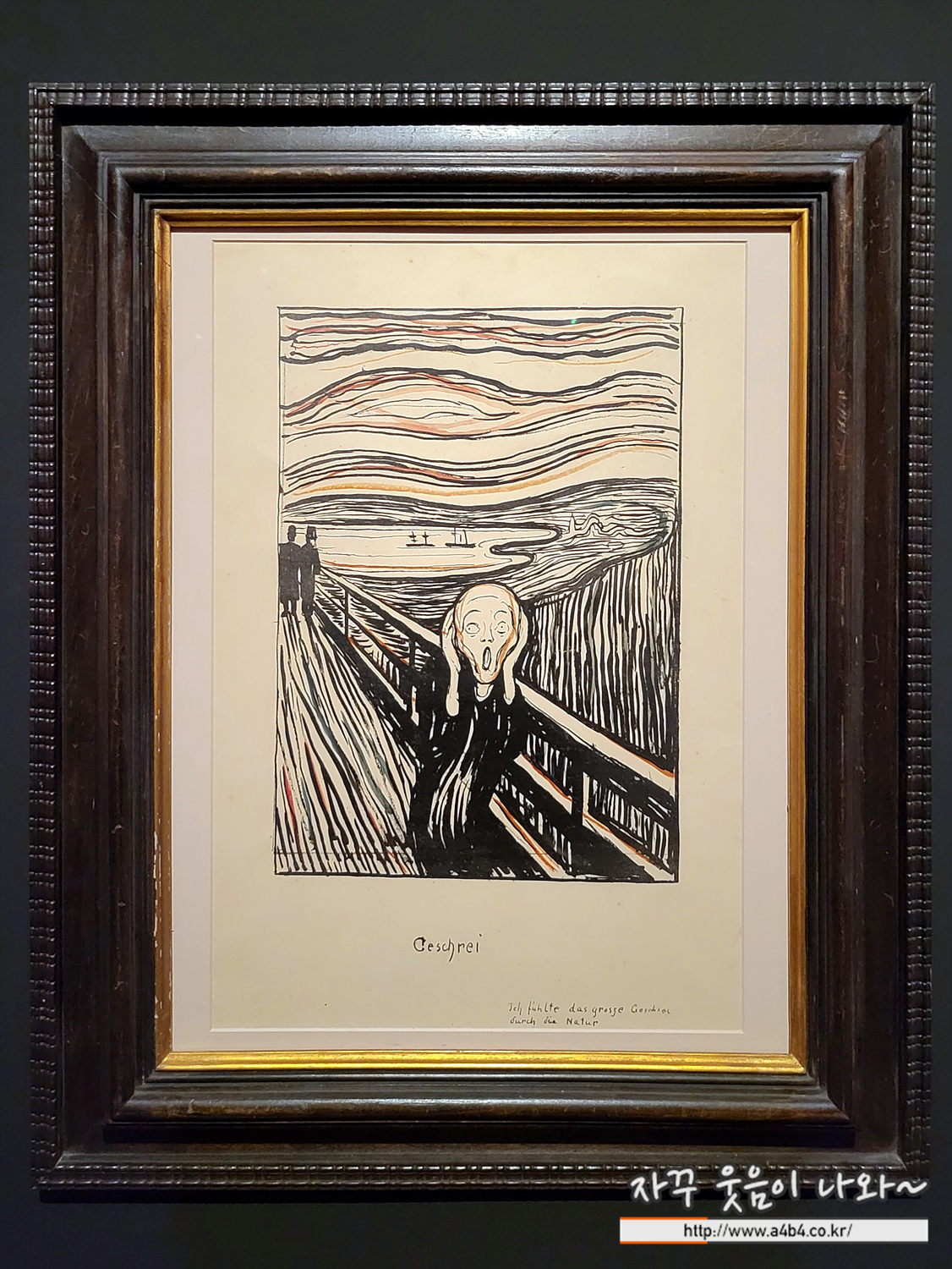이번 전시에서는 석판화 위에 뭉크가 직접 채색한, 전 세계에 단 2점뿐인 ’절규‘를 한국 최초로 전시되었다고 합니다.