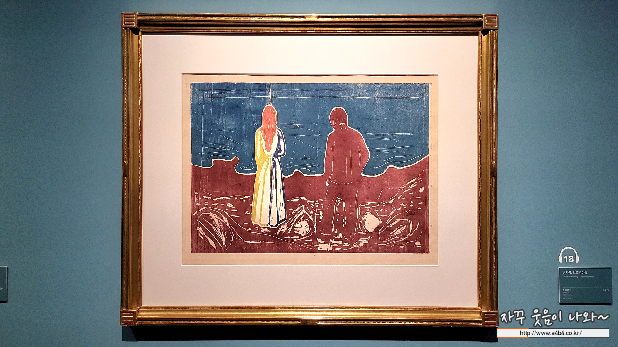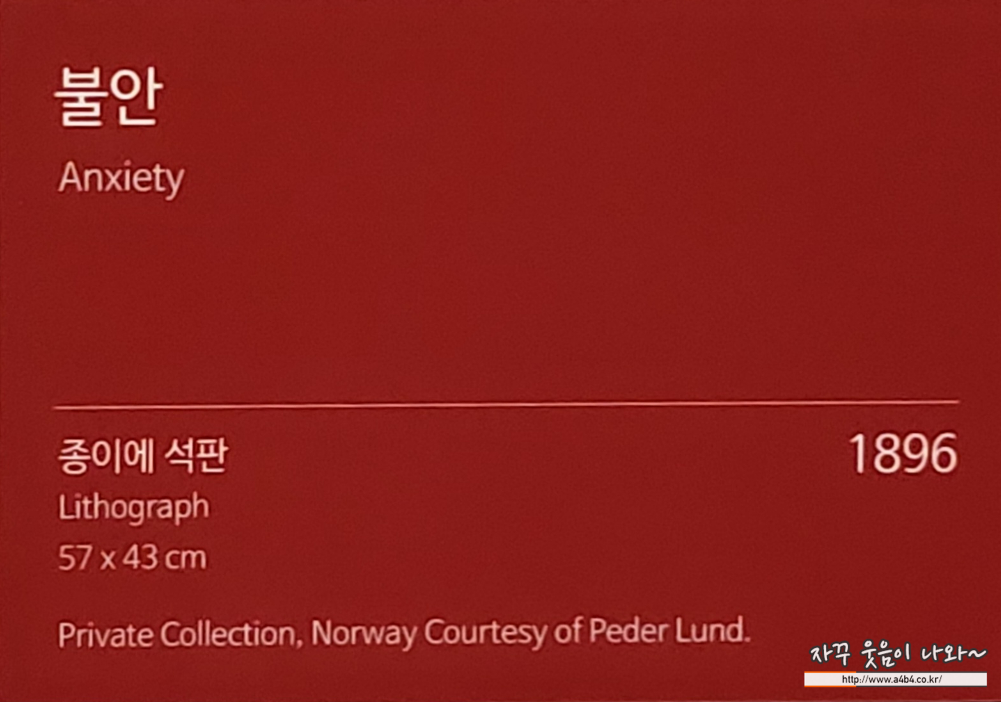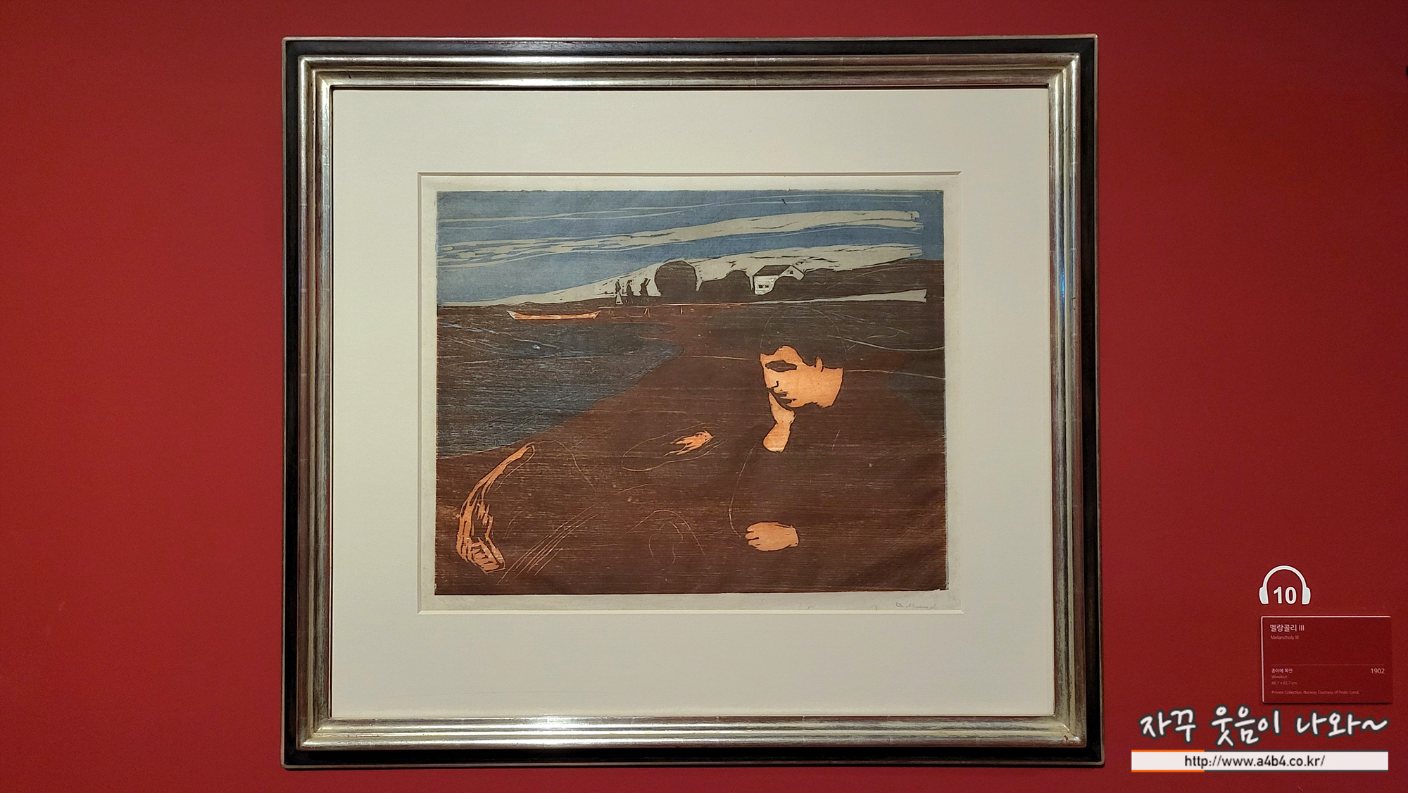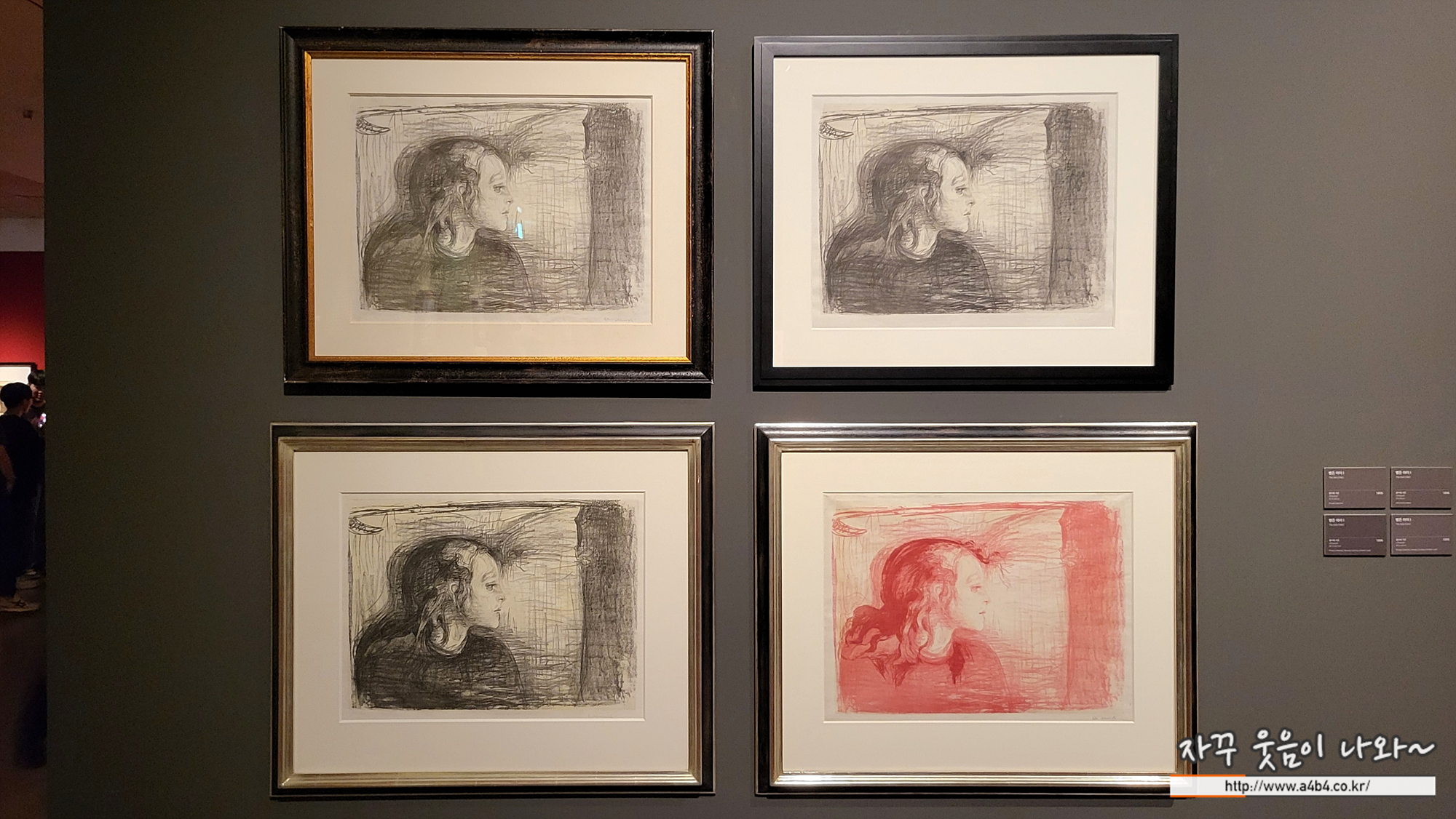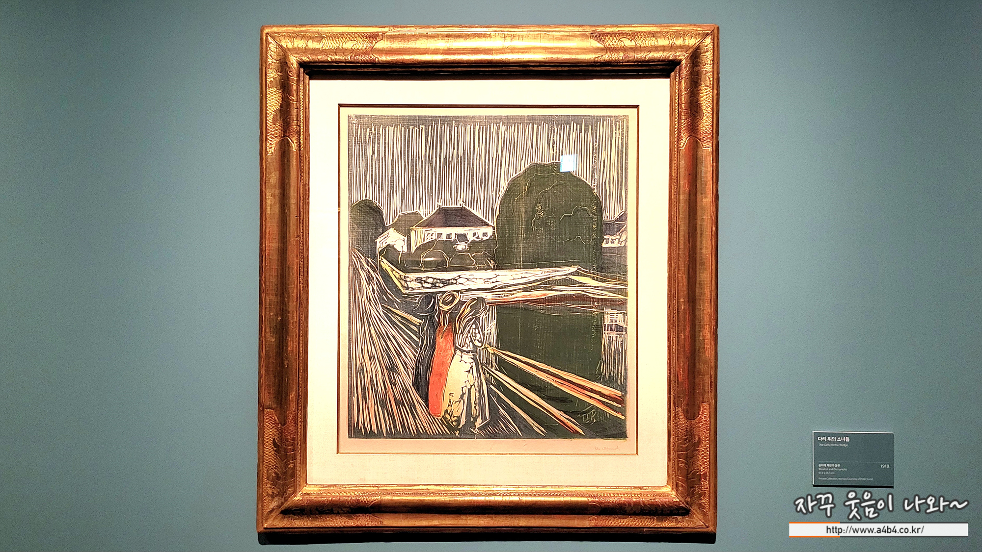 이번 전시에서는 석판화 위에 뭉크가 직접 채색한, 전 세계에 단 2점뿐인 ’절규‘를 한국 최초로 전시되었다고 합니다.