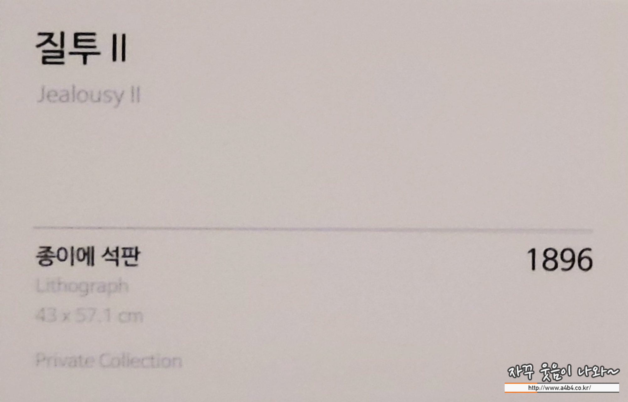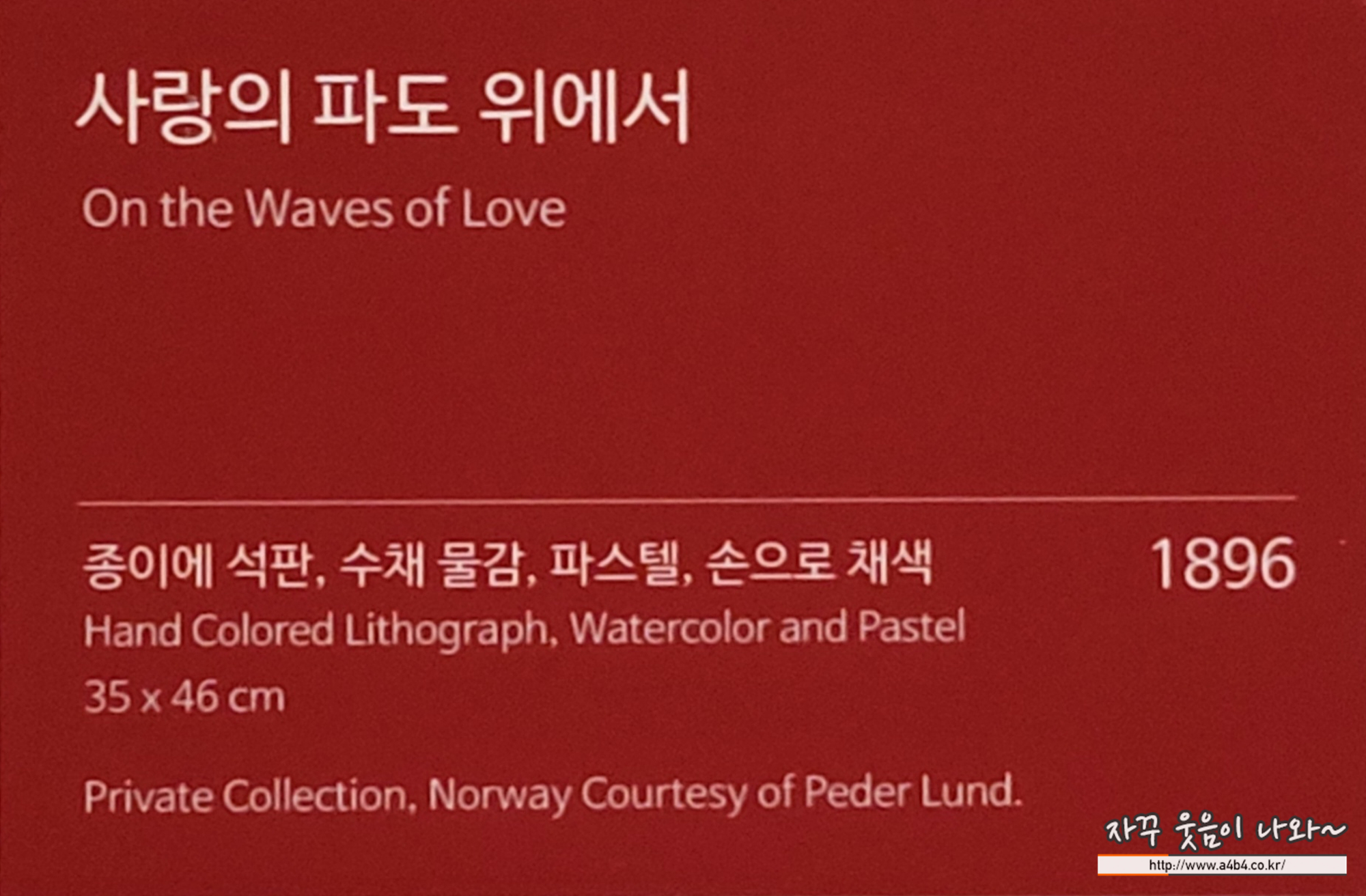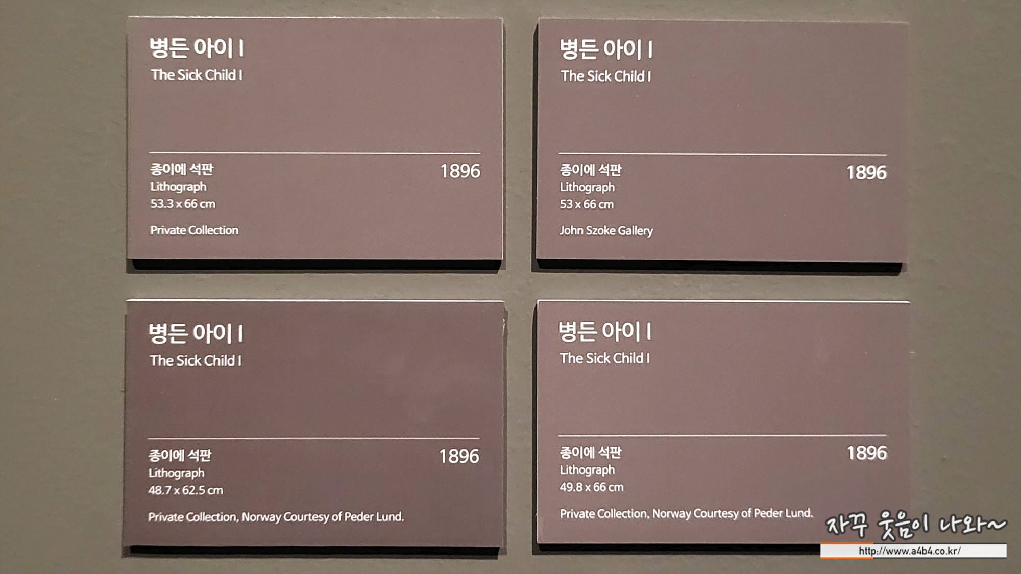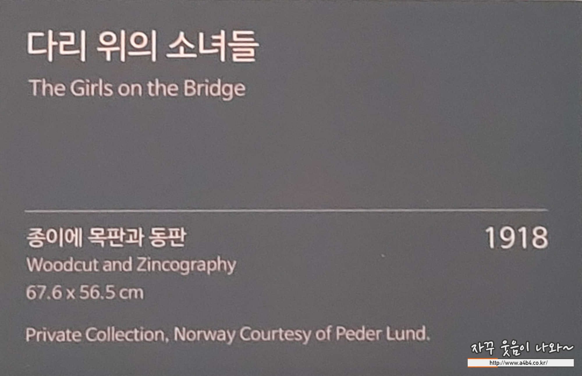 이번 전시에서는 석판화 위에 뭉크가 직접 채색한, 전 세계에 단 2점뿐인 ’절규‘를 한국 최초로 전시되었다고 합니다.
