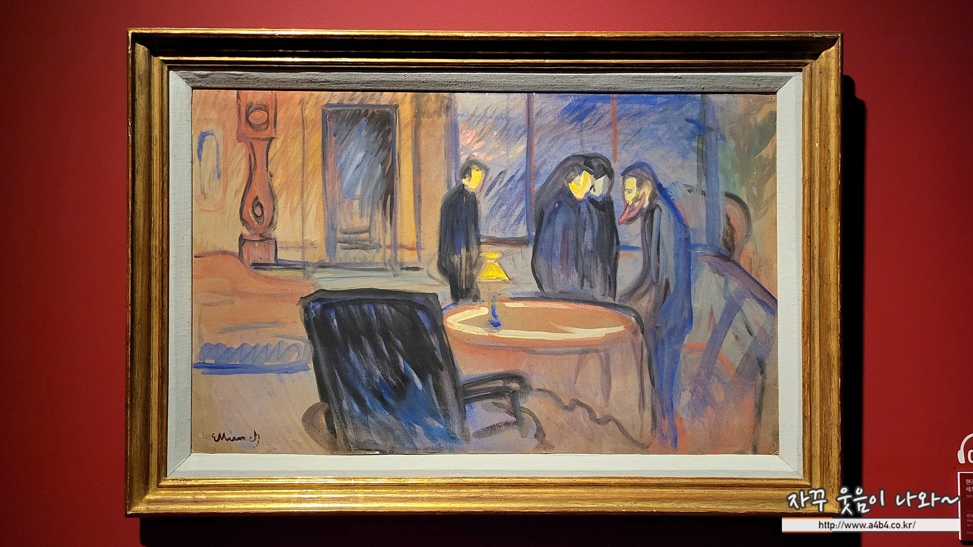 뭉크는 죽음에 대한 작품들을 많이 작업하였고, 그 작품들이 그의 스타일과도 잘 맞는데, 이 작품들은 뒤 별도 섹션에서...