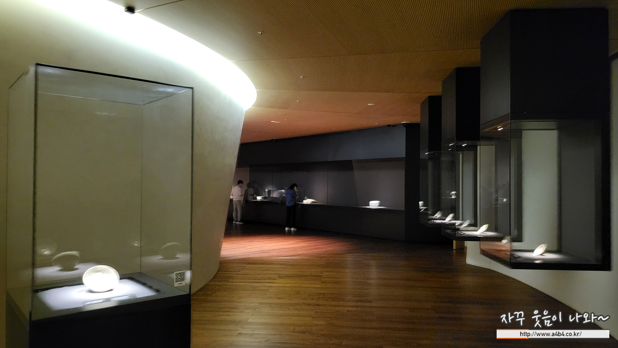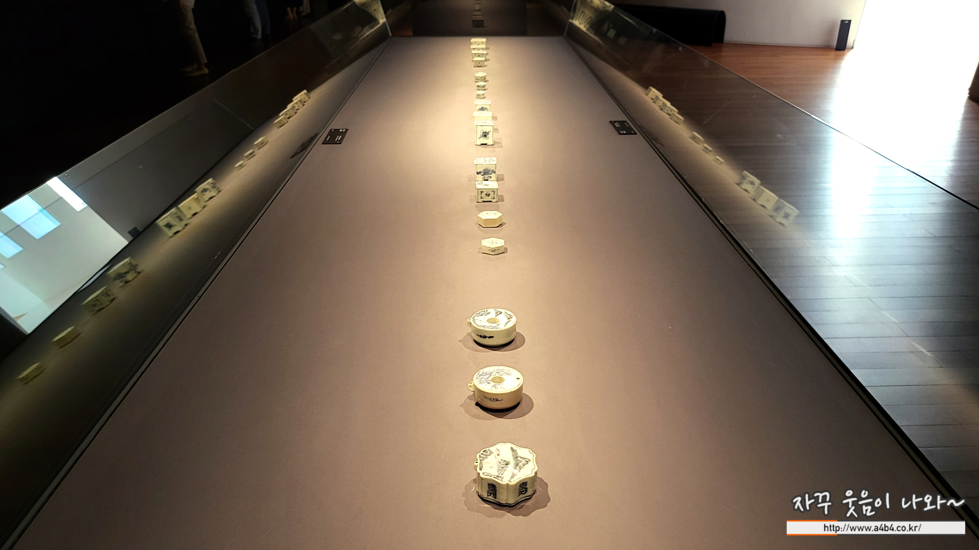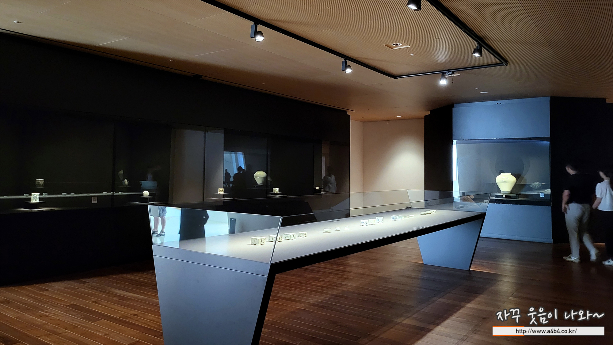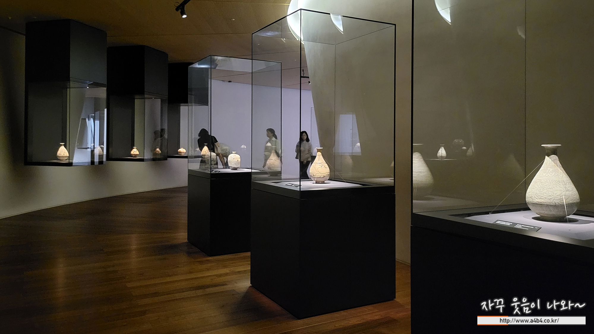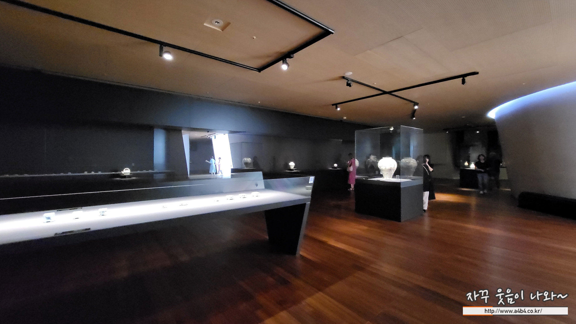 리움미술관 4층 '푸른빛 문양 한 점' 전시실은 빛에 약한 미술품들이 많다 보니 실대는다소 어둡고 음침한 분위기를 주기도 하는데. 무엇보다도 작품에 집중된 조명과 배치를 볼 수 있다.