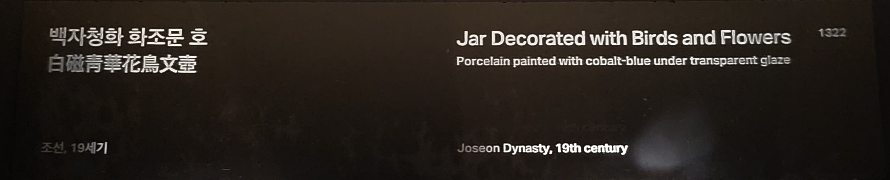 청화백자의 장식으로 꽃과 새가 결합한 예는 18세기에서 19세기에 걸쳐 다양한 예를 찾아볼 수 있습니다. 이 호는 넓게 펼쳐진 몸체 면을 화폭 삼아 꽃나무와 그 위에 앉아 있는 새 두 마리의 도상을 앞, 뒤로 그려 넣었습니다. 여기에 그린 꽃은 모란이나 매화인 경우가 많으며, 가지 위의 새는 서로 마주 보고 앉아 있어 서로 정답고 화목한 모습을 상징적으로 보여주고 있습니다.