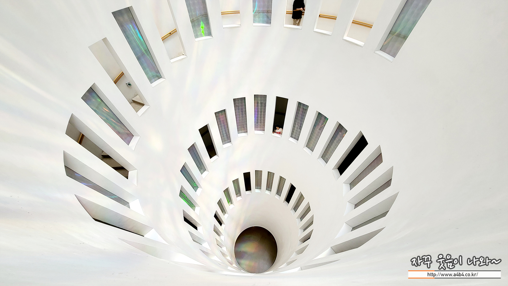 리움 미술관 M1 전시실은 총 4층의 전시관으로 구성되어 있습니다. 엘리베이터를 타고 4층으로 올라가서 다시 한 층씩 내려오는데요. 나선형의 계단을 내려오면서 한 층 한 층 이동이 가능합니다. 계단은 아니지만 미국 뉴욕의 구겐하임 미술관이 생각나더라는...