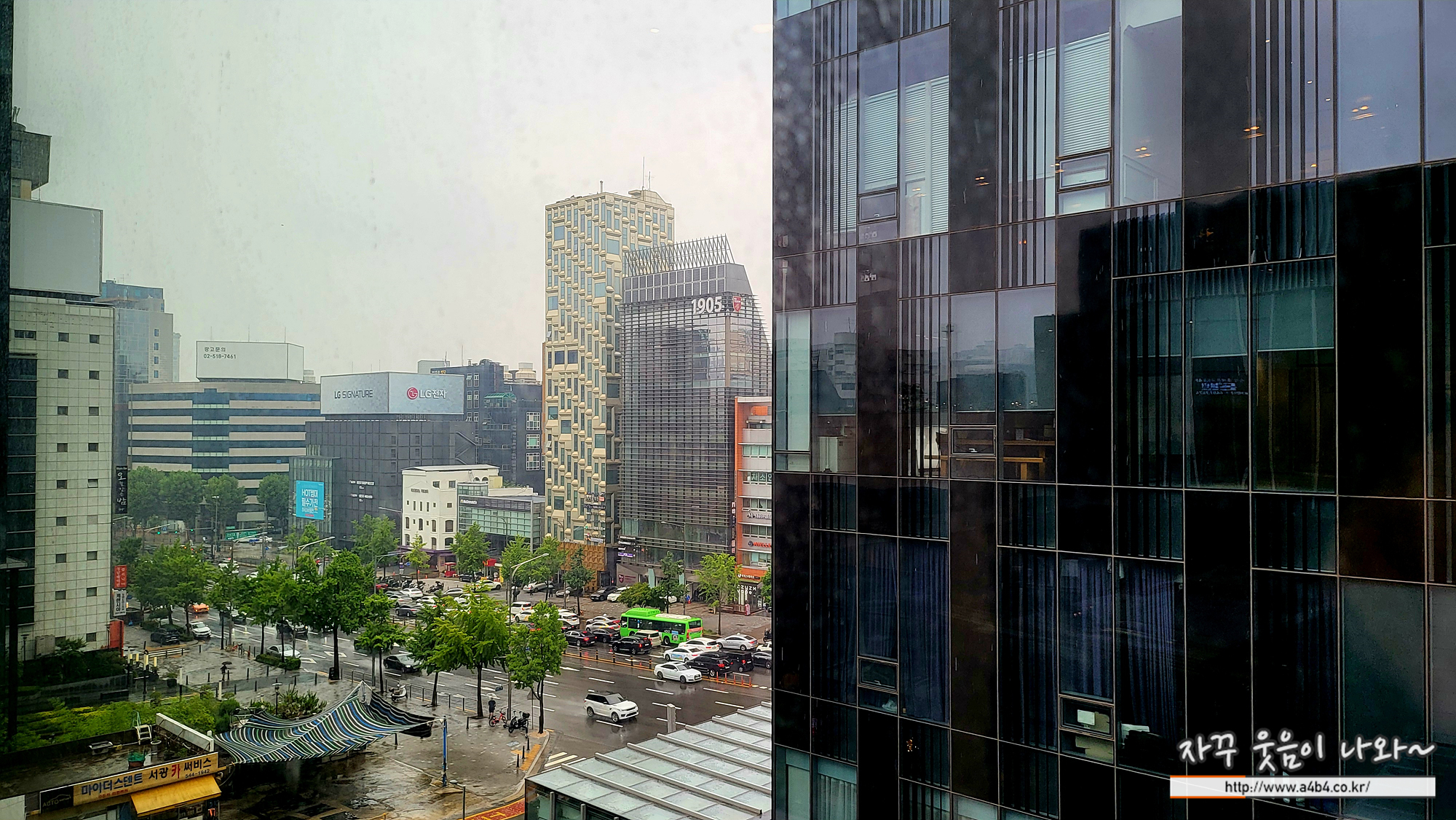 저는 창가쪽으로 자리안내 받았고요. 비오는 청담동 풍경과 함께 간단하게 점심식사 합니다.
