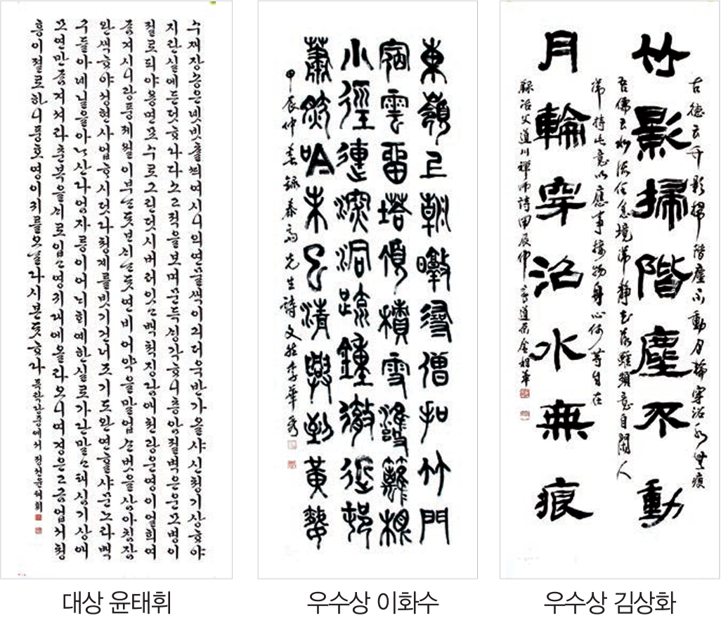 제32회 대한민국서예전람회 대상과 우수상 작품은 아래와 같습니다. 축하 드립니다.