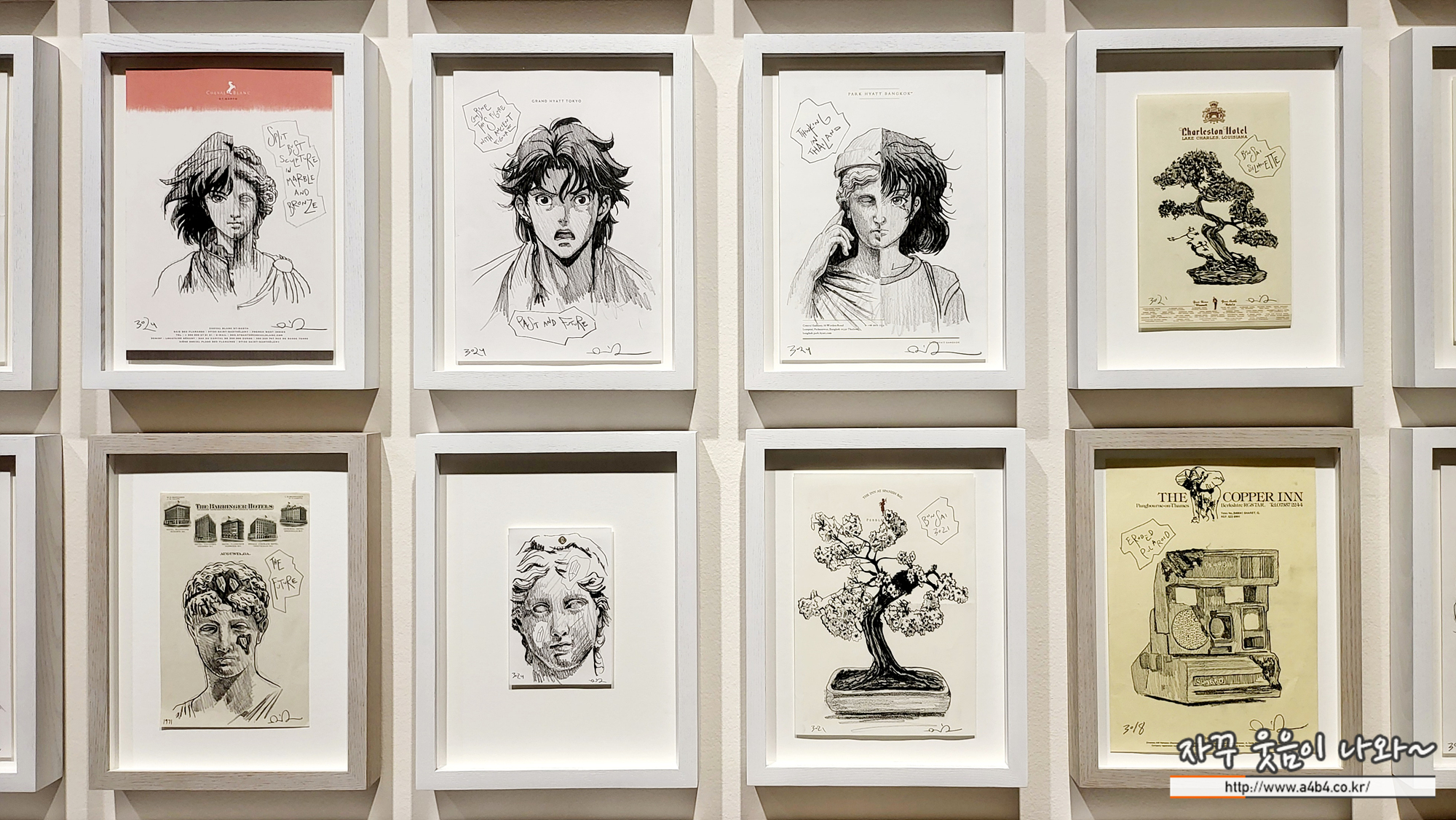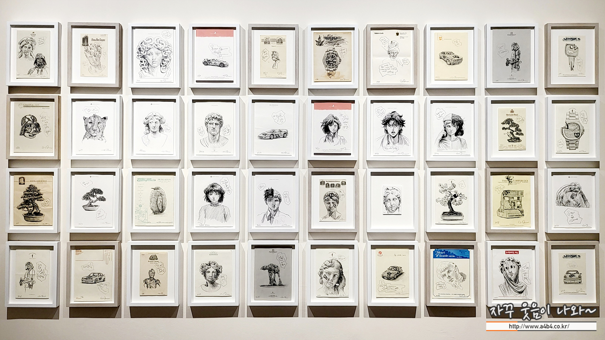 그의 스케치 작품과 다니엘 아샴의 사인...
