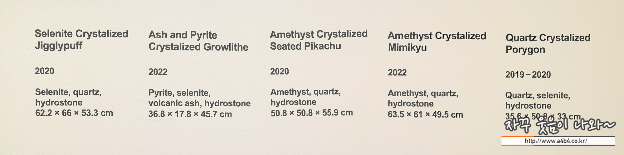 다니엘 아샴은 일상 생활에서 쉽게 볼 수 있는 오브제를 미래의 시간에 투영해 시간의 경계를 허물고, 부식된 석고 오브제에 크리스탈 등의 광물을 넣어 단절과 파괴가 아닌 영원한 시간의 흐름을 시각화했는데요. 이번 서울 다니엘 아샴 : 서울 3024 전시회에서는 관람객이 직접 전시회에 참여하는 공간이 마련되어 있습니다.