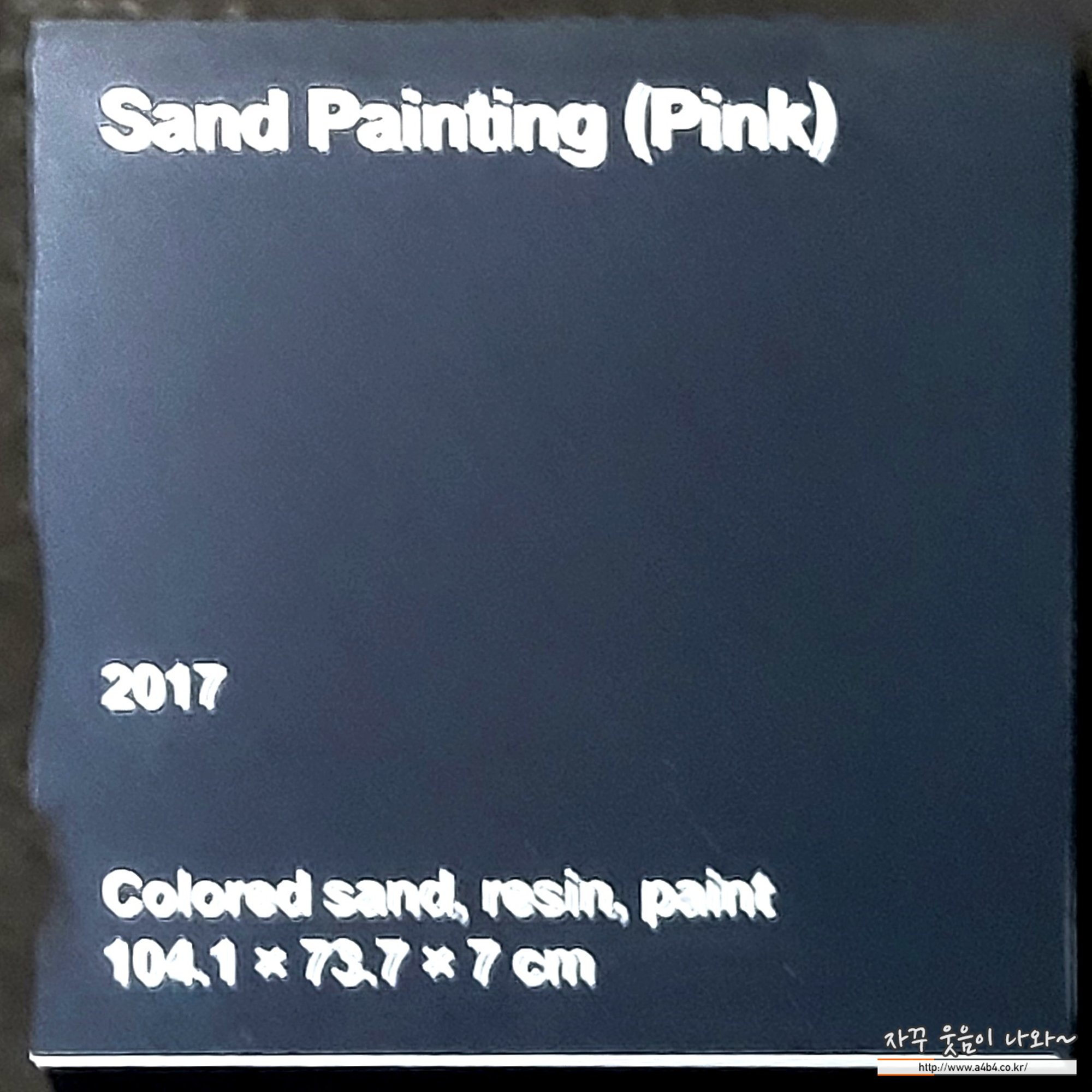 '샌드페인팅(핑크)'는 대형 설치 작업 '달의 정원'을 바탕으로 제작한 작품으로, 상단으로 갈수록 변화하는 분홍색 톤의 작품에는 젠 가든에서 볼 수 있는 갈퀴의 흔적이 남아있습니다. 다니엘 아샴은 영원 불변으로 느껴지지만 사실은 매일 변화하고 있는 젠 가든과 갈퀴의 무늬를 통해 영속성과 일시성을 동시에 보여줍니다.