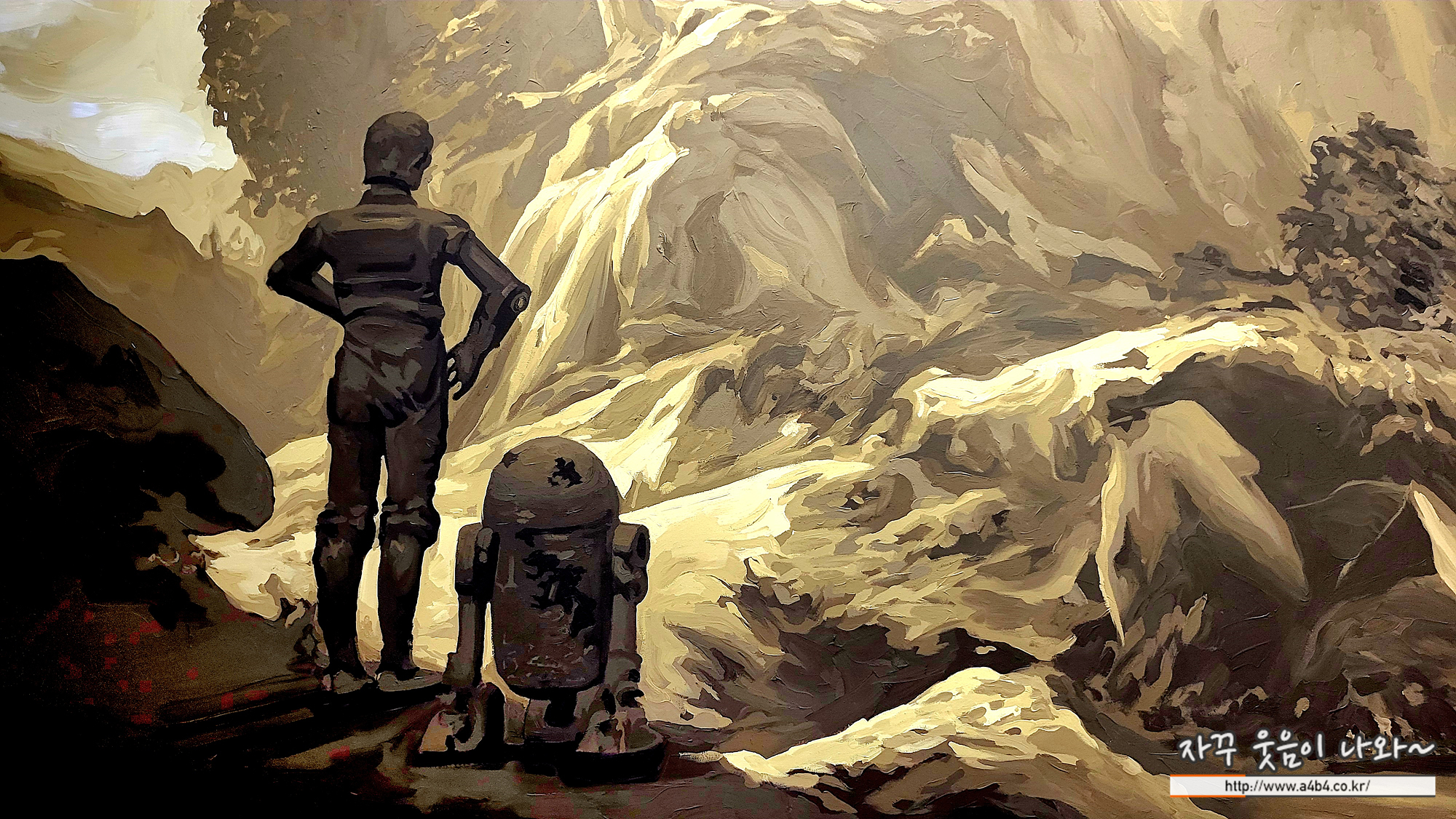하나의 작품속에 르코르뷔지에의 건축물과 스타워즈의 R2D2, C-3PO가 한 공간에 있습니다. 뒤에서 나오지만 작가는 여러 영화 감독의 영향을 많이 받았다고 합니다.