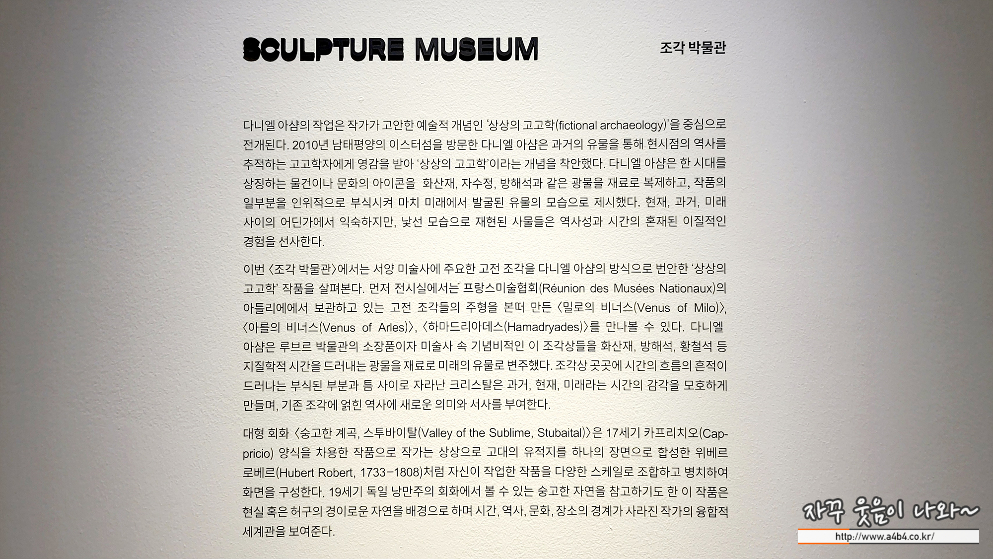 조각 박물관 소개를 마치고 다니엘 아샴: 서울 3024 ㅡ 발굴된 미래 전시회 다음 공간으로 이동 합니다.