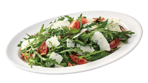 그라나파다노 치즈와 레드와인 비네거 드레싱이 루꼴라 채소위에 얹어진 샐러드 입니다.