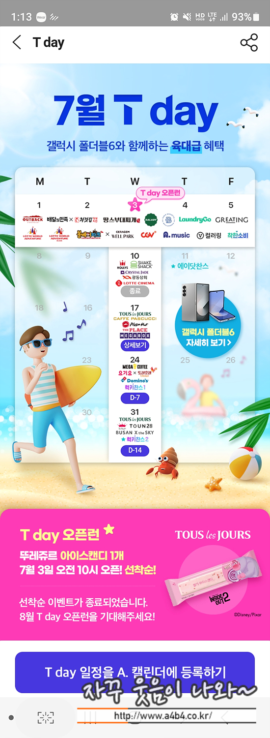 이번 SKT T day 3주차 혜택으로 The Place 40% 할인에 탄산음료 2잔 무료쿠폰이 나왔습니다.