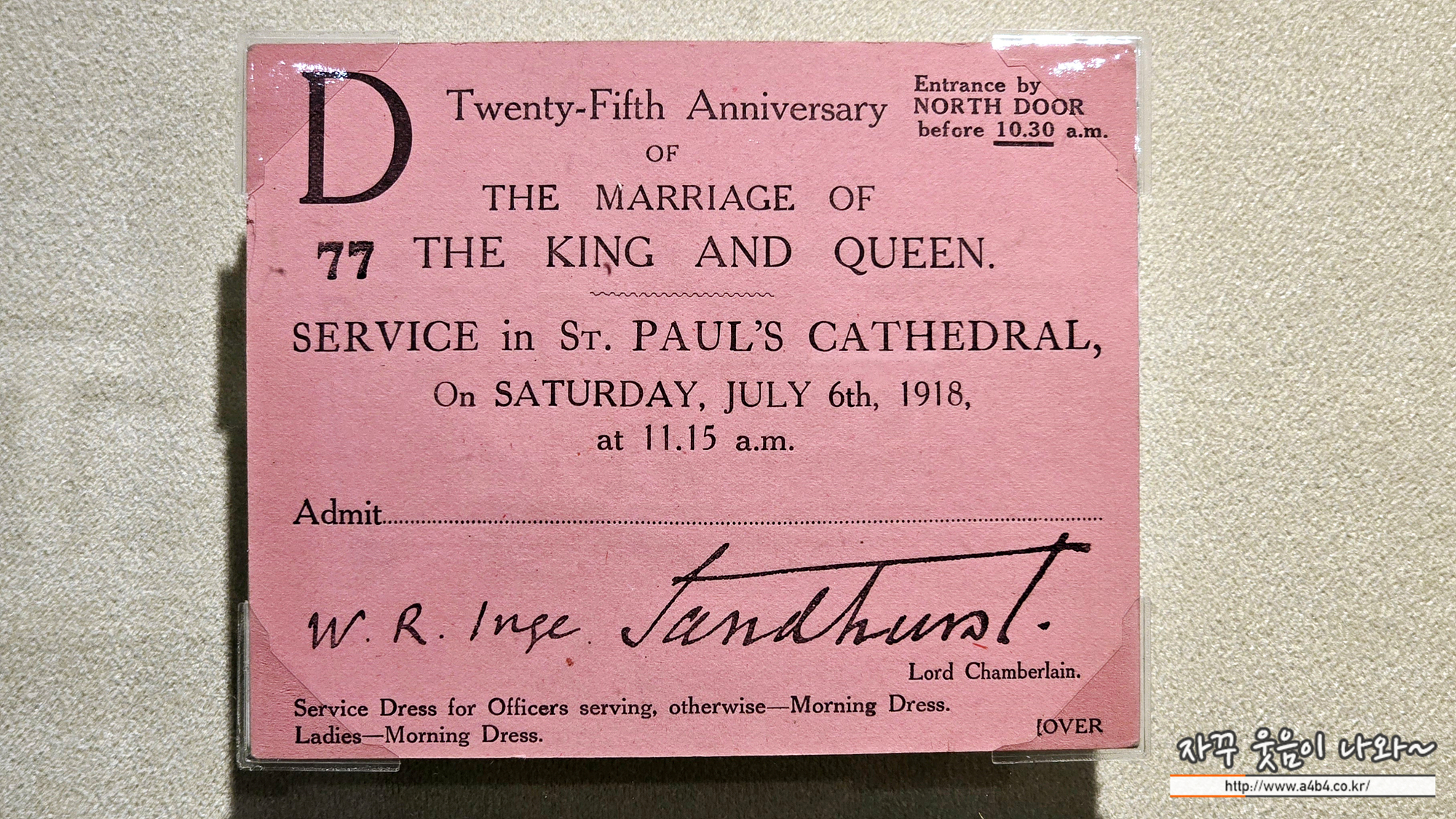 조지 5세와 퀸메리 은혼식 공식 초대장이라고 한다.