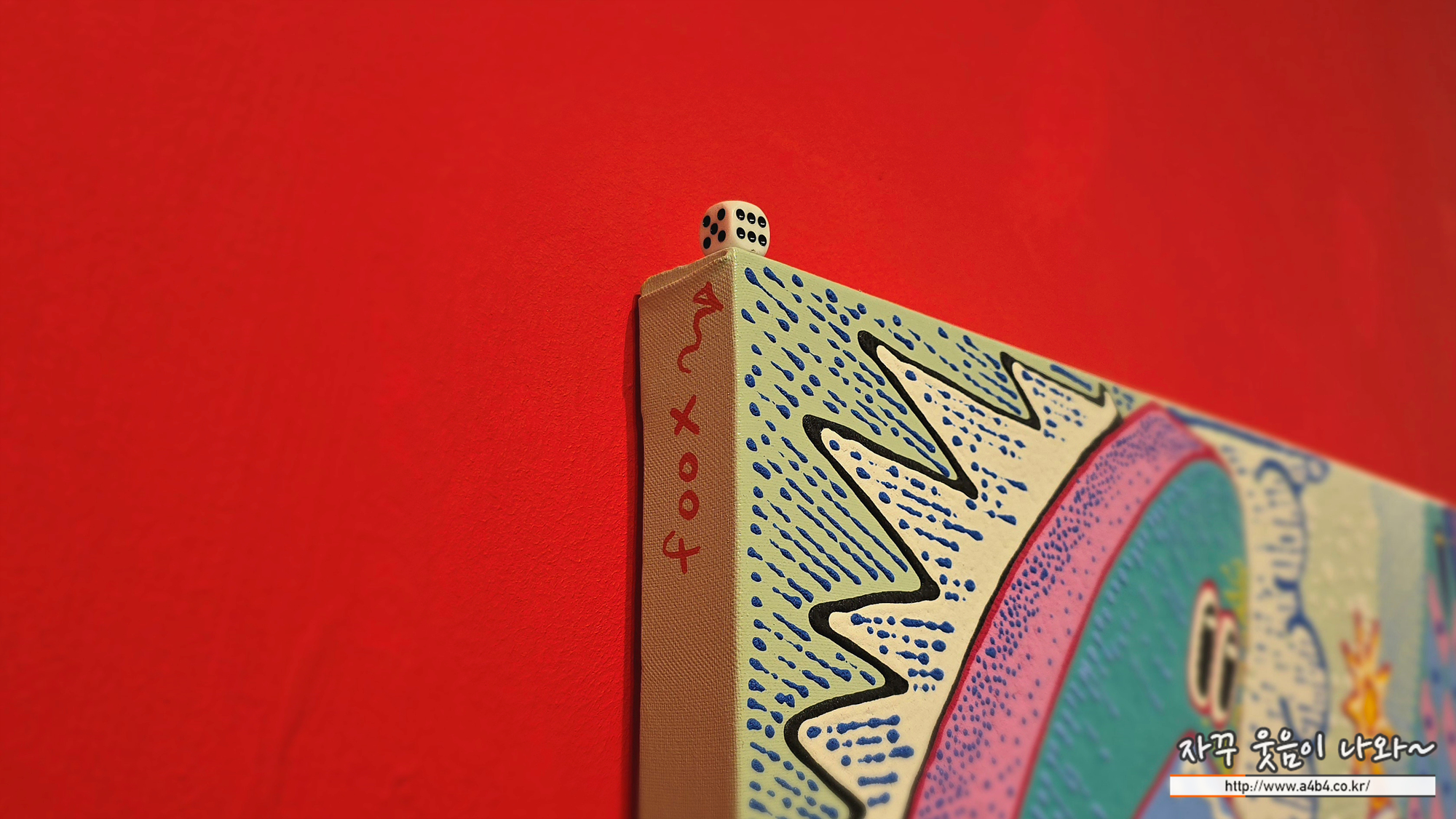 그리고 이번 THE FOOL : 선택의 기로 전시회에 전시된 작품 캔버스왼쪽 위에는 하나 또는 두개의 주사위가 올려 있는데요. 이 주사위가 무엇을 의미하는지는 확인 못했네요