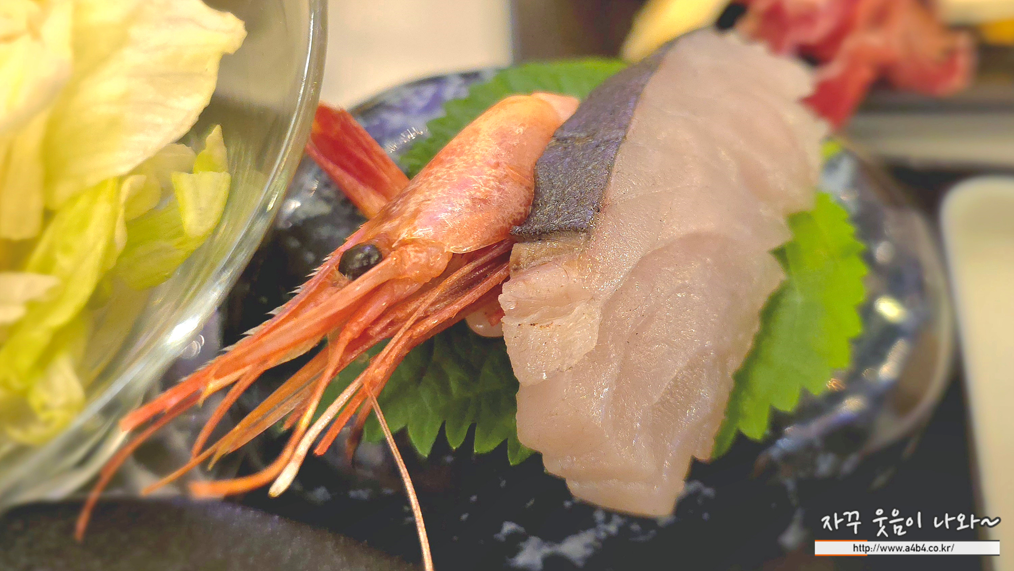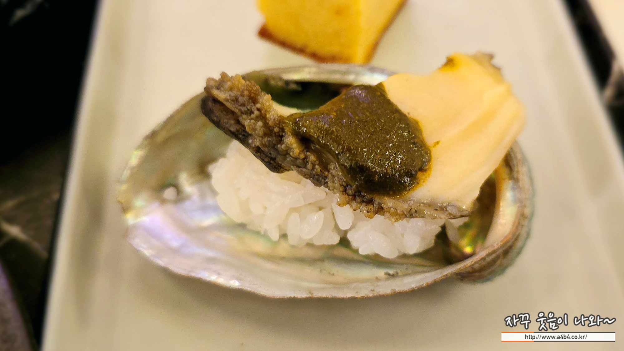 전복, 훈연 삼치 사시미, 단새우, 전복게우소스, 청어 이소베마끼, 후토마끼, 교쿠가 나오는데요. 가이세키 요리라 말하기는 그렇지만 술과 함께 하기에 매력적입니다.