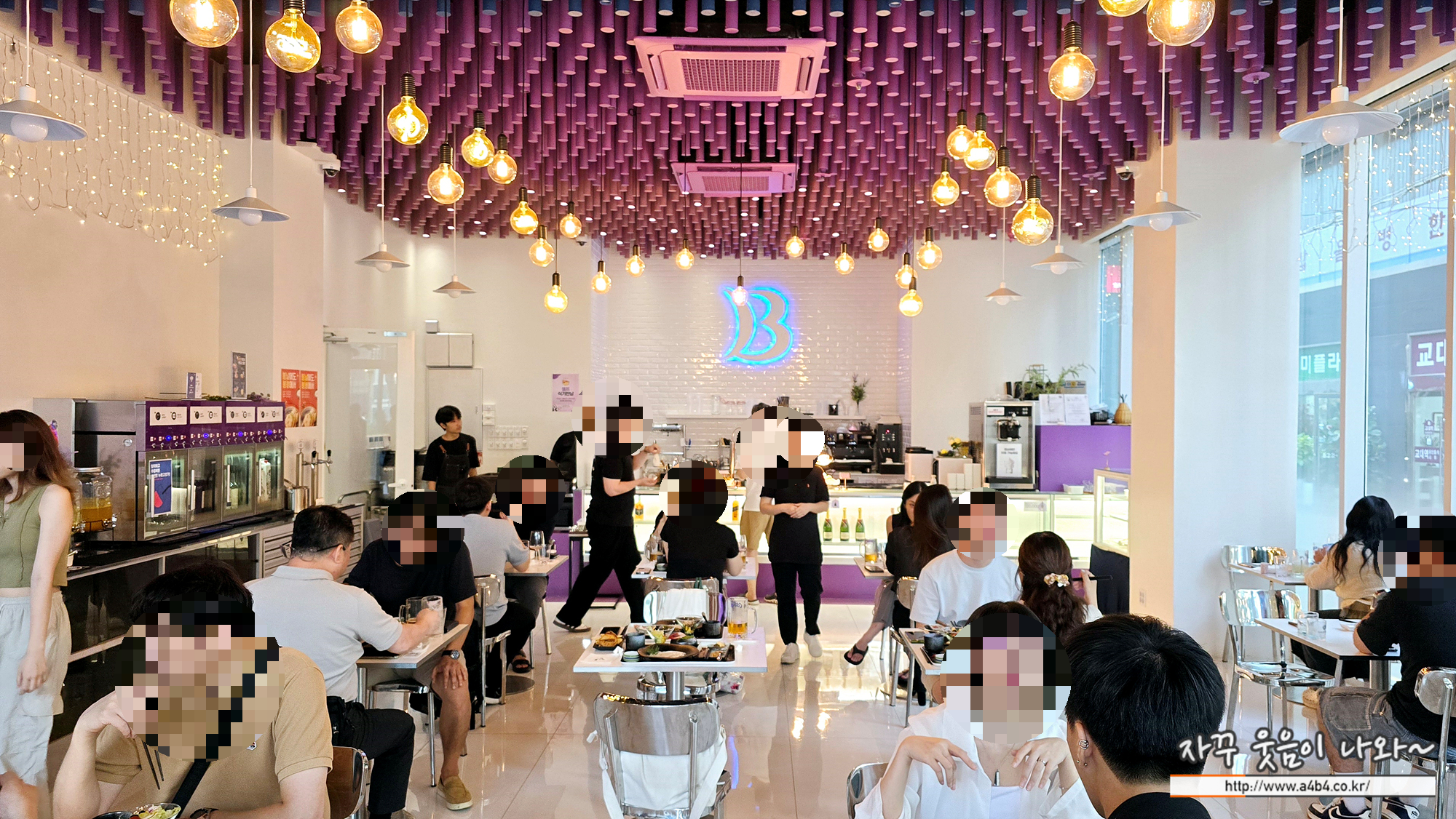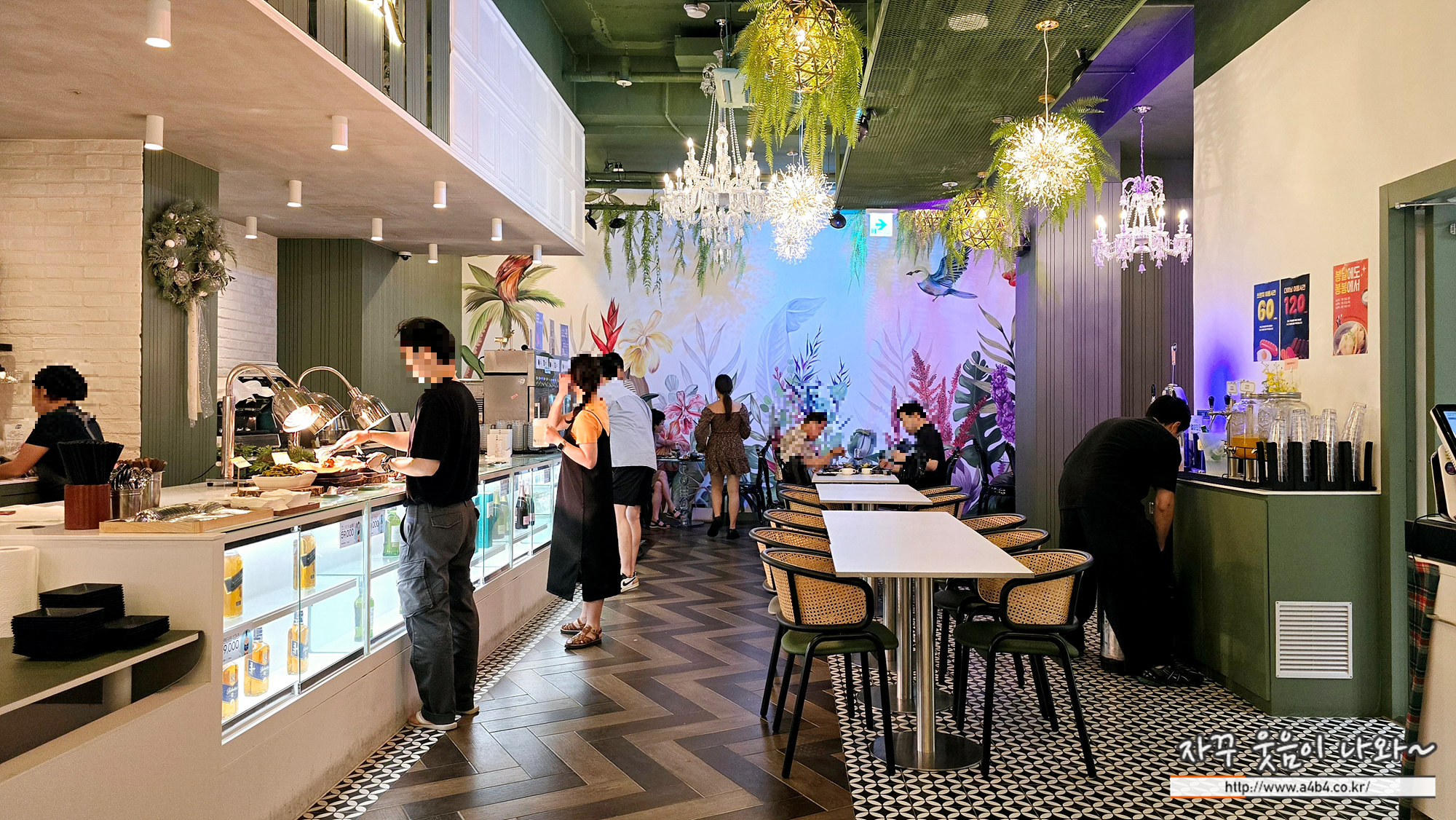 봉쥬르 봉봉 교대 지하 1층 모습입니다. 인테리어 깔끔하고 조명 은은하고 천장이 높아서 마음에 드네요.