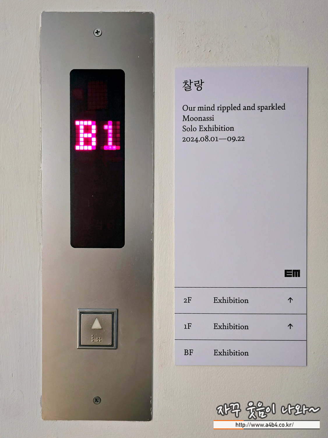 참고로 이번 무나씨 개인전이 열리고 있는 에브리데이 몬데이 갤러리 공간에서는 조용하면서도 맑은 음악이 나오는데요. 이번 찰랑 전시회을 위해 별도 제작된 음악이라고 하네요.