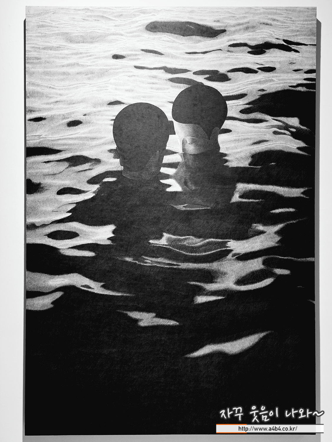 전시장에서 만난 작품의 느낌은 찰랑이라는 제목는 너무 정화된 제목처럼 느껴집니다. 언제라도 가라 앉을지 모르는 두 사람의 모습과 물속에서는 둘이 손을 잡고 있을지... 궁금하면서도 상당히 불안한 감정을 유도하고 있네요.