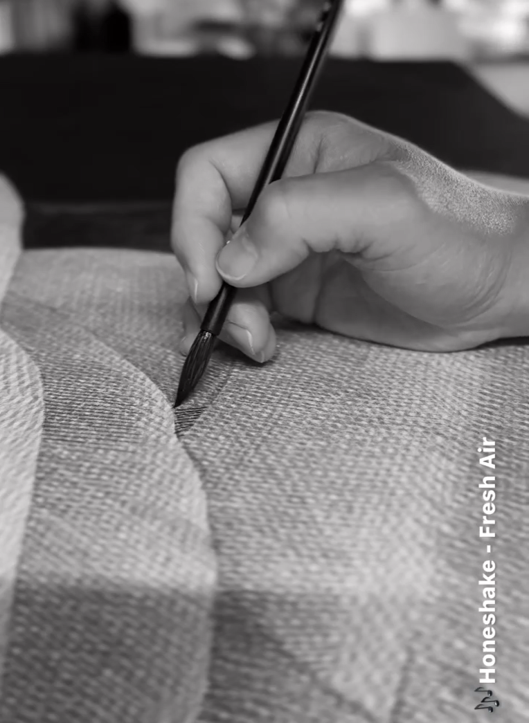 한지위에 먹을 이용해서 작업하고 있습니다. 세필붓으로 선을 그리고 그 위에 선을 중첩하면서 작품에 입체감을 부여하고 있습니다. 특히 흰색의 한지와 검은색의 먹을 통해 무나씨 작가만 독창적인 느낌이 상당히 매력적이네요.