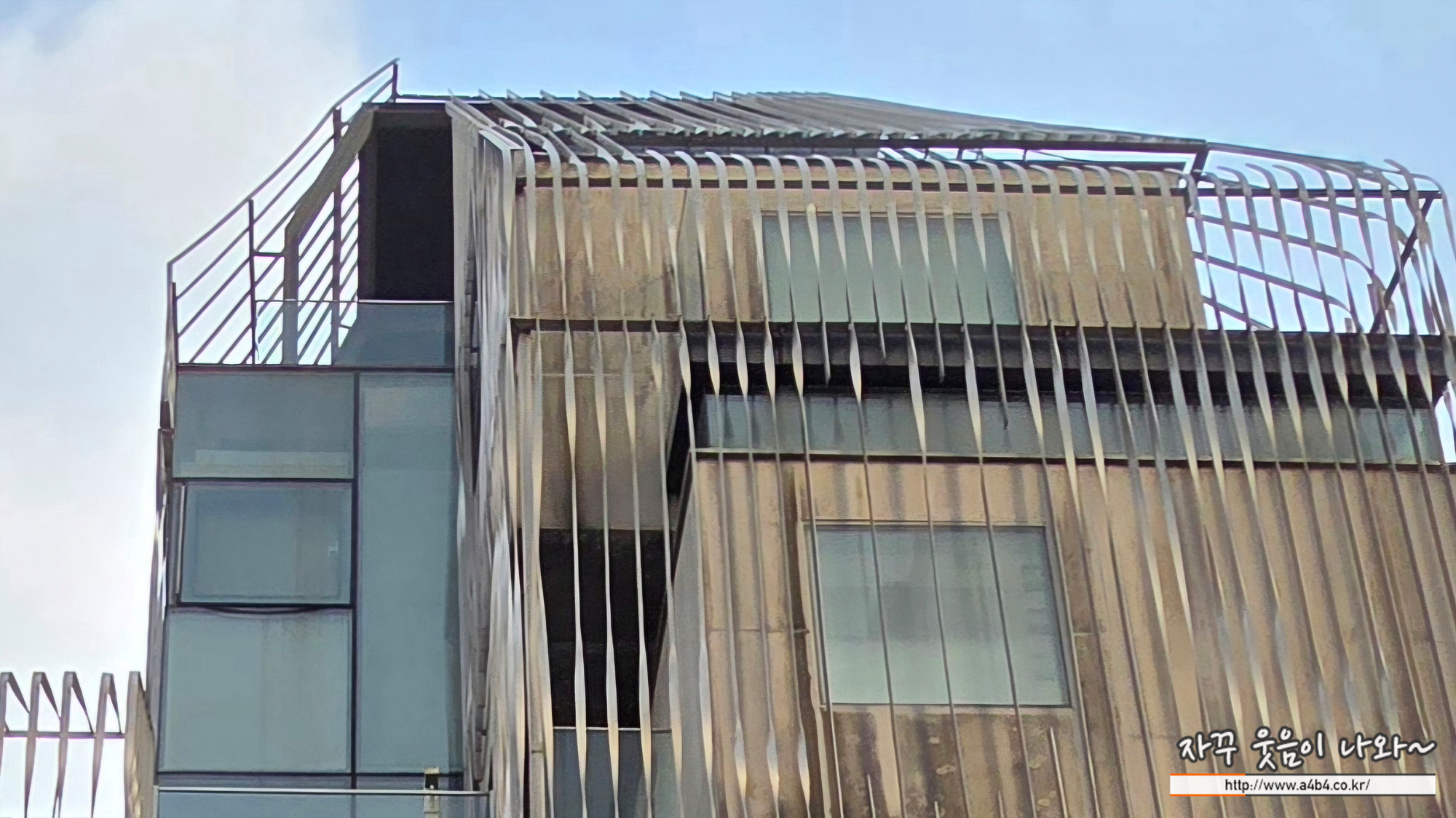 특히 송파구에서는 낮은 상가와 빌라촌에 어울리지 않는 뒤틀린 금속으로 장식된 건물 외관이 눈길을 끄는데요.