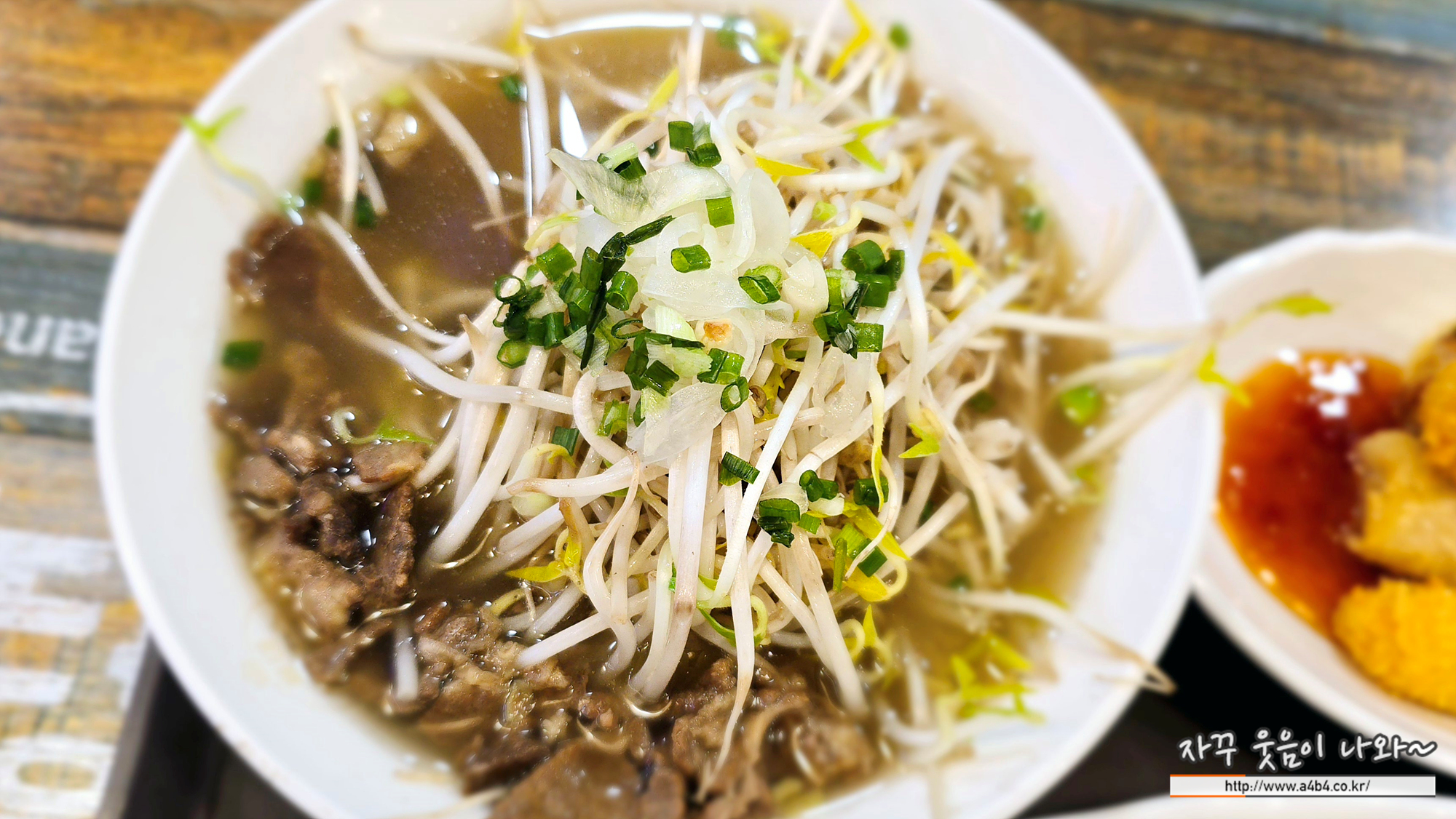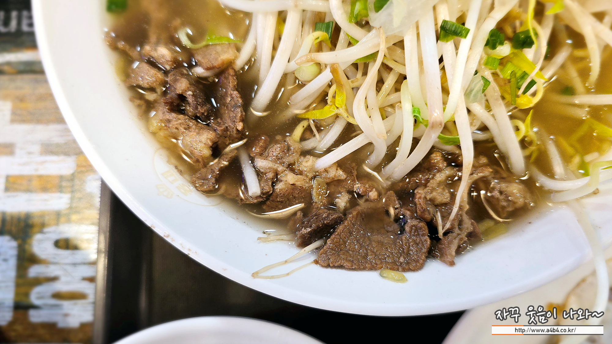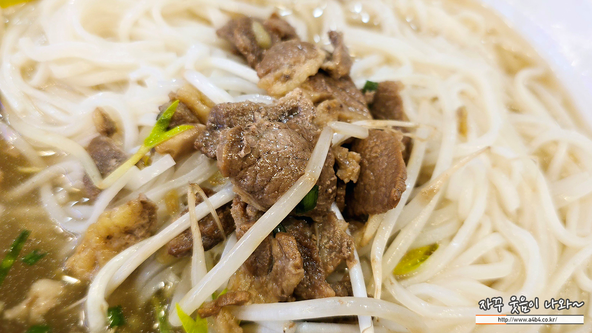 쇠고기는 얇게 펴진 고기가 아니라 불고기처럼 잘게 볶아진 것 같은 살짝 양념된 소고기가 올라가 있는 것이 홍대쌀국수 특징입니다. 양이 많으신 분은 1천원 추가해서 8,500원에 곱배기도 가능합니다.