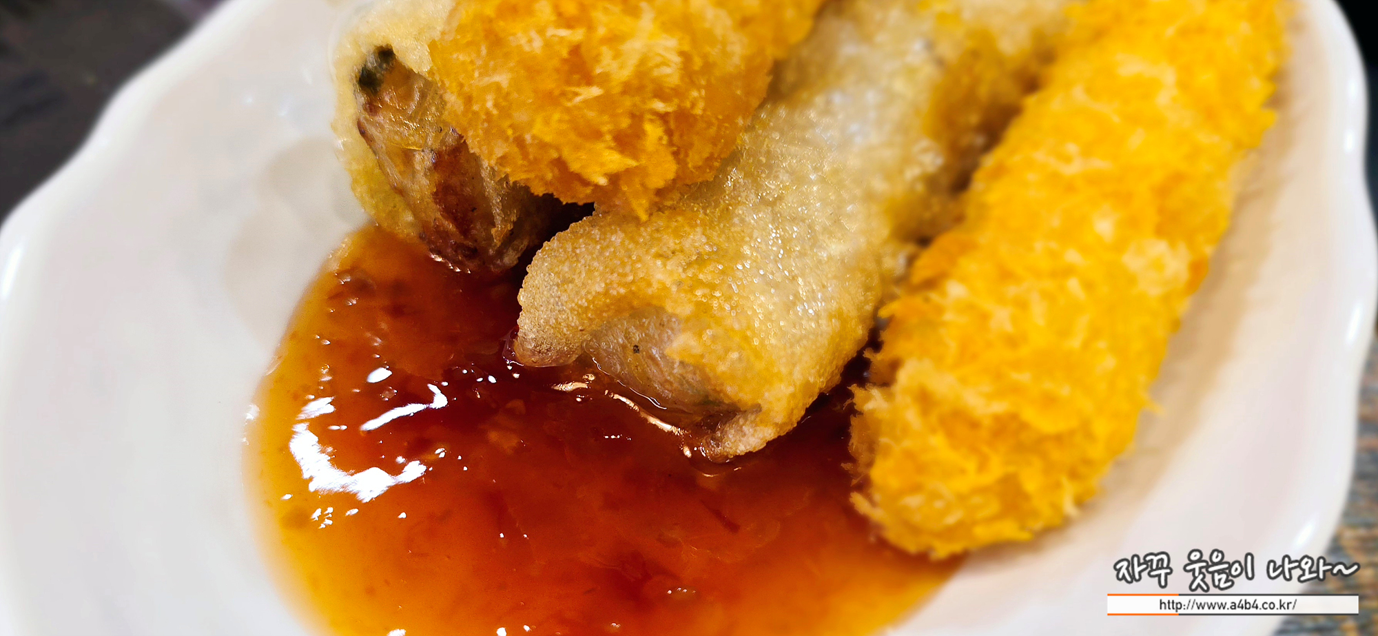 짜조 2개는 단품으로 4,500원, 새우튀김은 3개 기준 4,500원입니다. 정상가로는 10,500원 가격인데, 다소 높은?