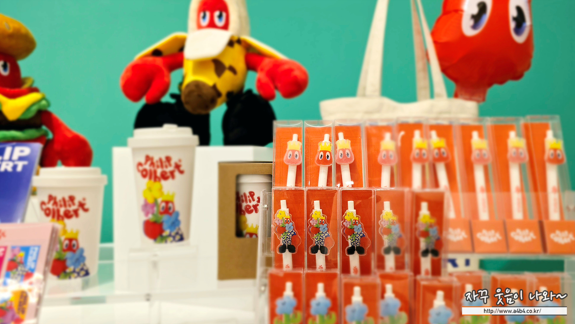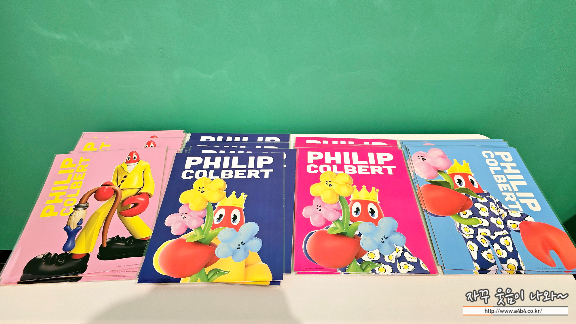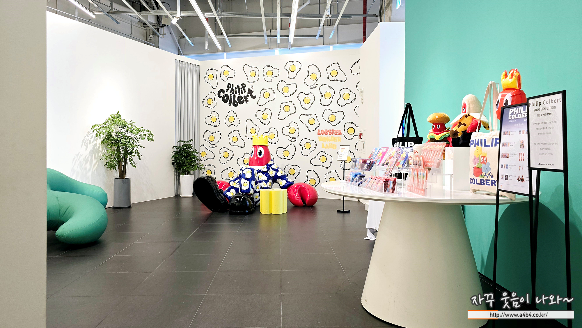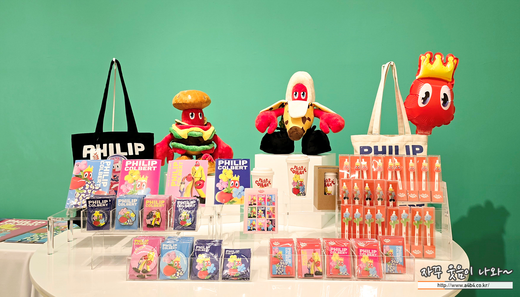 잠실 넥스트 뮤지엄에서 열리고 있는 필립 콜버트 특별展에서는 작가의 다양한 굿즈를 만나볼 수 있습니다. 포스터 및 옆서, 에코백, 뱃지, 필기구, 스티커, 인형 등을 만나볼 수 있습니다.