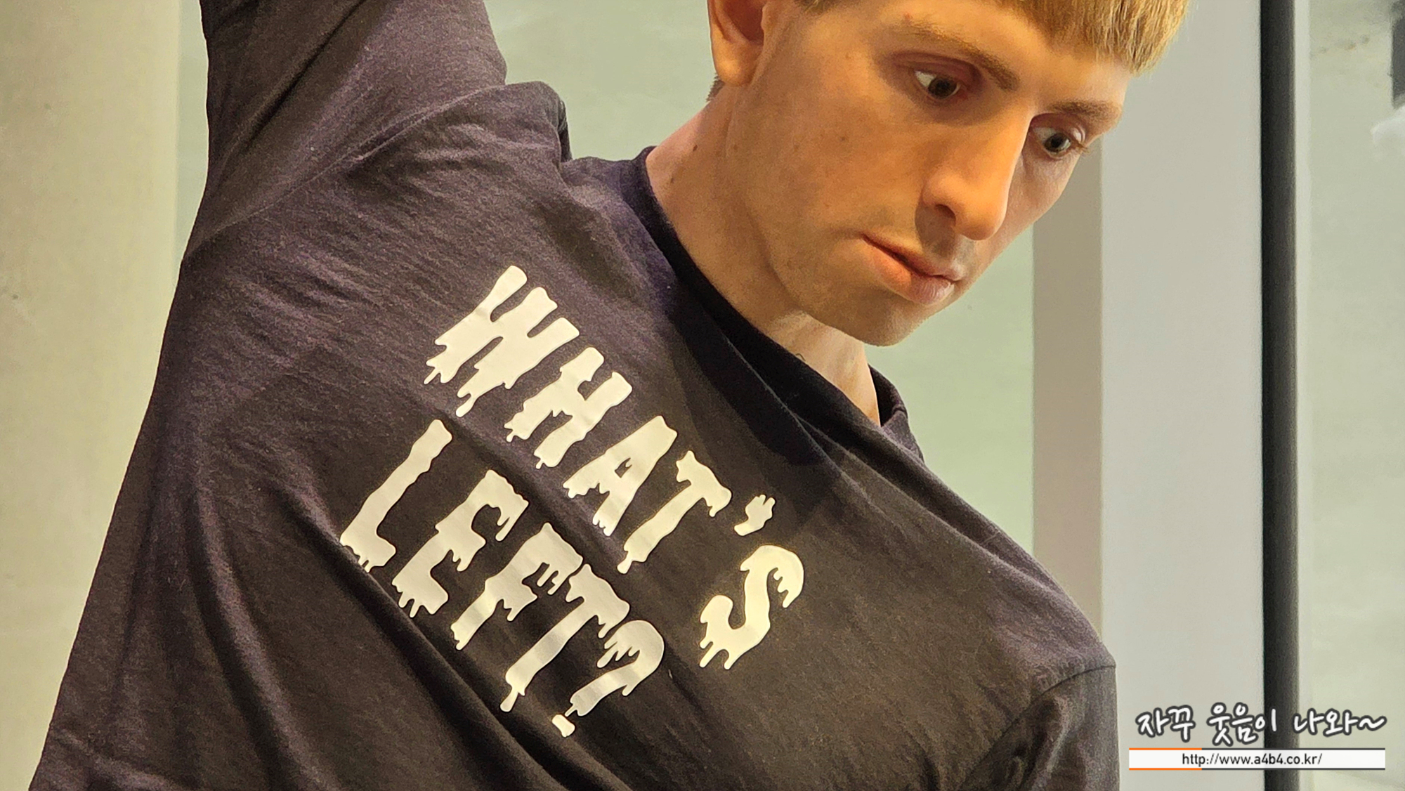 인물의 티셔츠에 새겨진 "무엇이 남았는가?"라는 수수께끼 같은 문구는, 시련을 겪고 이를 극복해가는 인간의 반복되는 투쟁에 대한 성찰을 유발하며, 동시에 허무주의적인 불안감과 위기 이후의 씁쓸한 회상을 내포하고 있다.