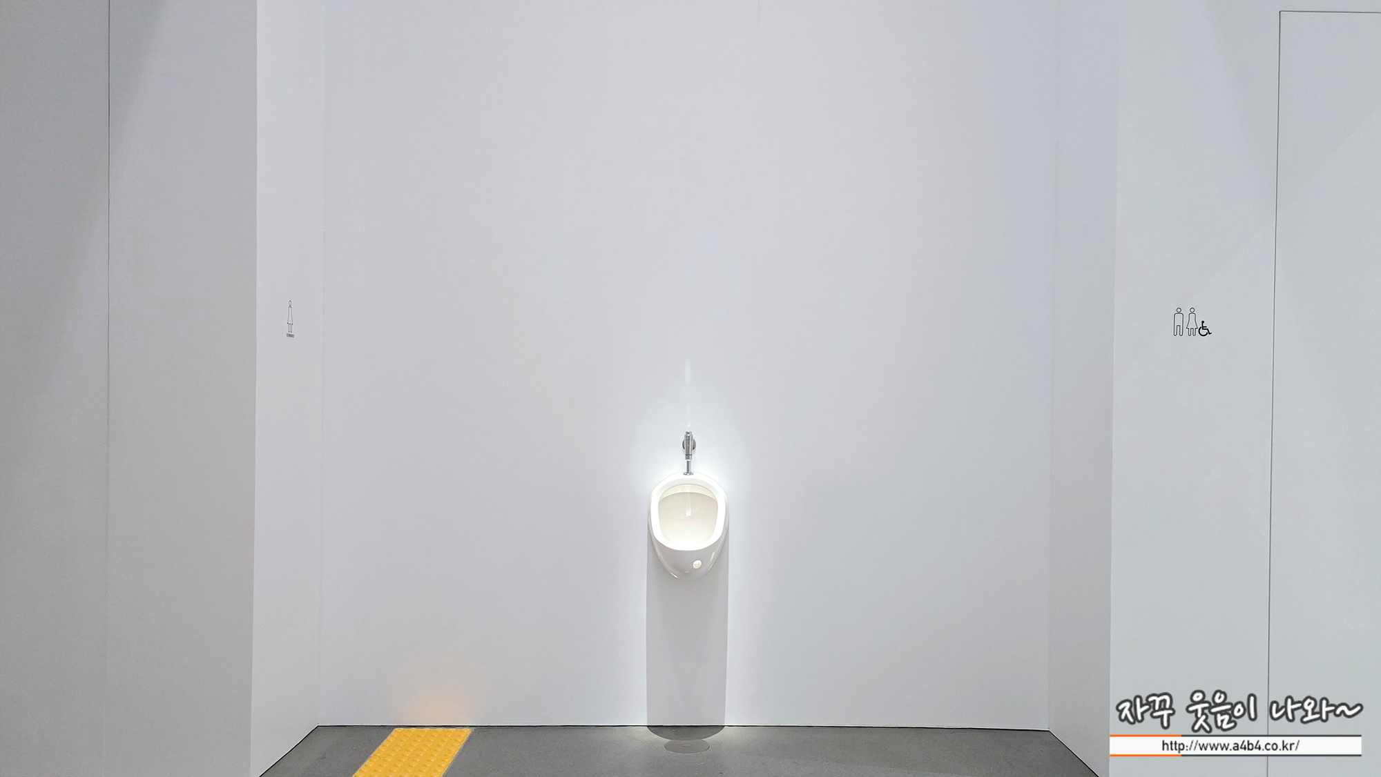 공간 끝쪽에 남성용 소변기 하나가 덩그러니 벽에 부착되어 있다.