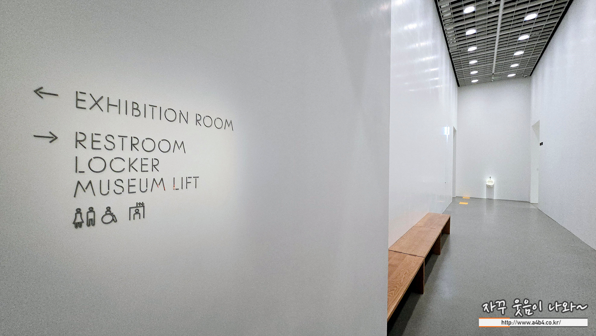 전시회장 구석에는 화장실과 라커, 1층으로 올라가는 엘리베이터 공간이 있는데...