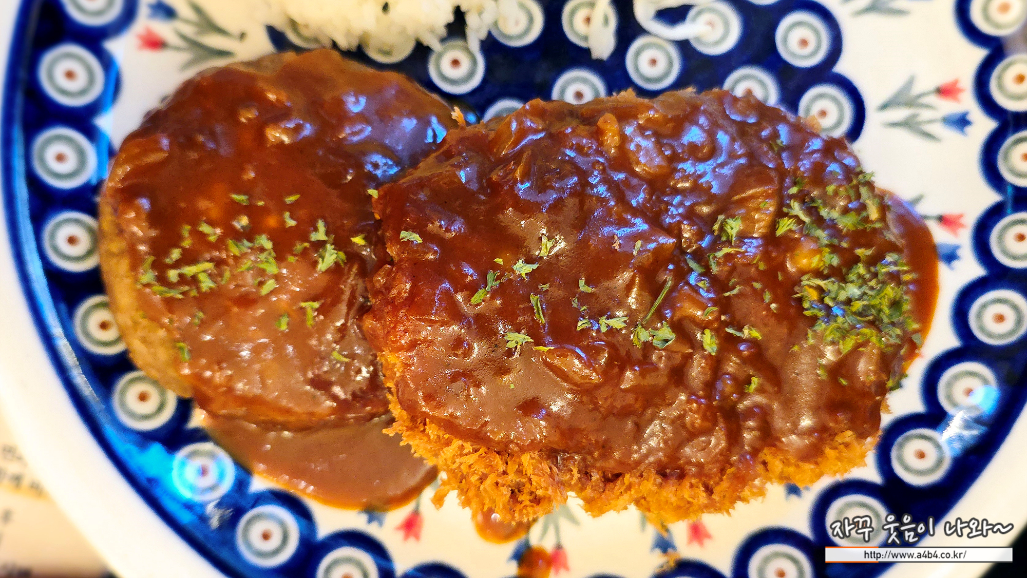 함박카츠는 부드러운 식감을 돈카츠는 비교적 두께 있는 식감을 보입니다.