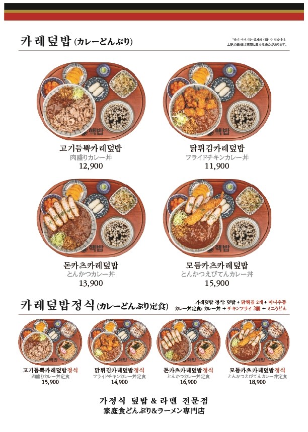 이외에도 핵밥 메뉴에는 라멘과 카레덮밥도 있습니다. 가격은 1만원 초반...
