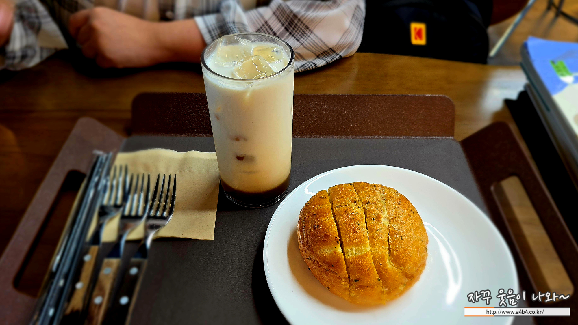서울에서 갈릭브레드 단품만으로도 6천원이 넘을 것 같은데, 아아가 포함된 가격입니다.