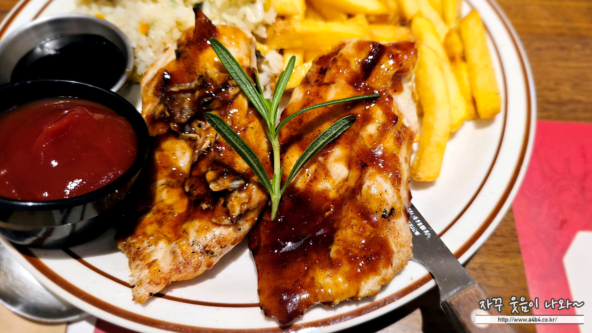 요녀석은 TGIF 맴버 가입하고 웰컴 바우처로 받은 시그니처 글레이즈드 치킨입니다. 세트메뉴와 주류 제외하고 단품 식사로 20,000원 이상 주문해야 가능한 메뉴인데요. 여기에 볶음밥 하나 추가합니다. (+500원)
