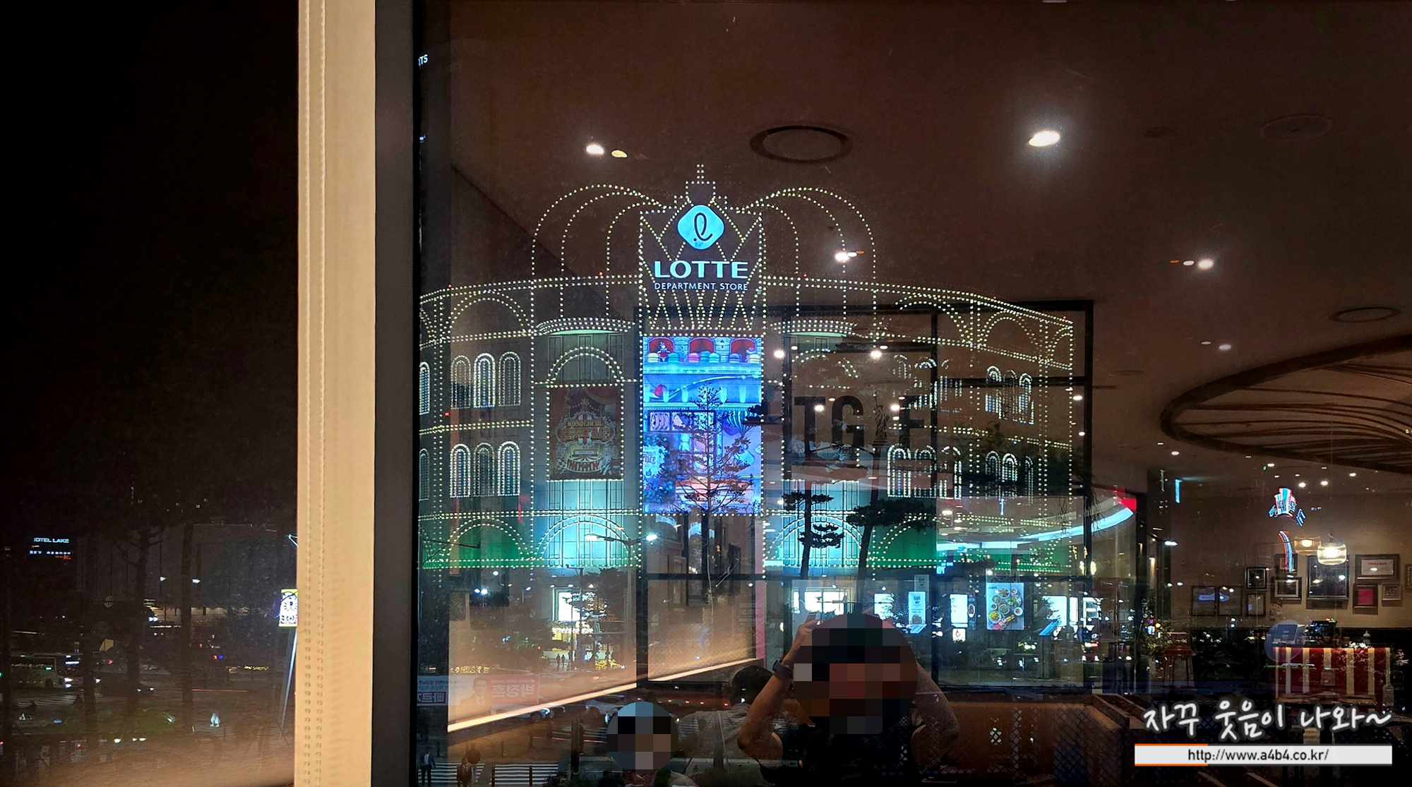 또한, 창밖으로 잠실롯데백화점과 롯데월드몰, 타워의 경치를 보면서 식사할 수 있는데요. 특히 연말연시에는 백화점과 타워 건물 사이니지 등을 통해 상당히 멋있는 볼거리를 선사하고 있습니다. 식사의 또다른 재미를 주네요.