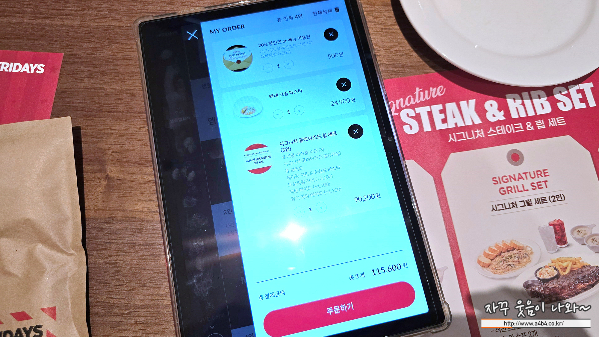TGIF 메뉴 확인 및 주문은 테이블에 있는 태블릿을 통해 확인과 주문이 가능합니다. 결제는 나가시면서...