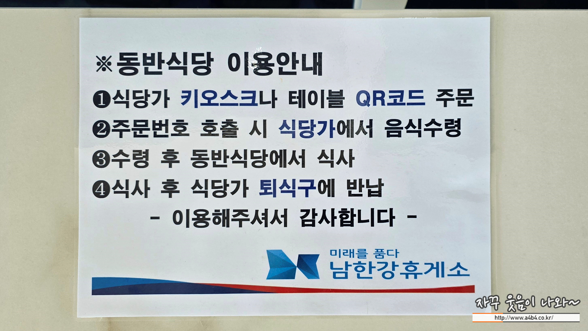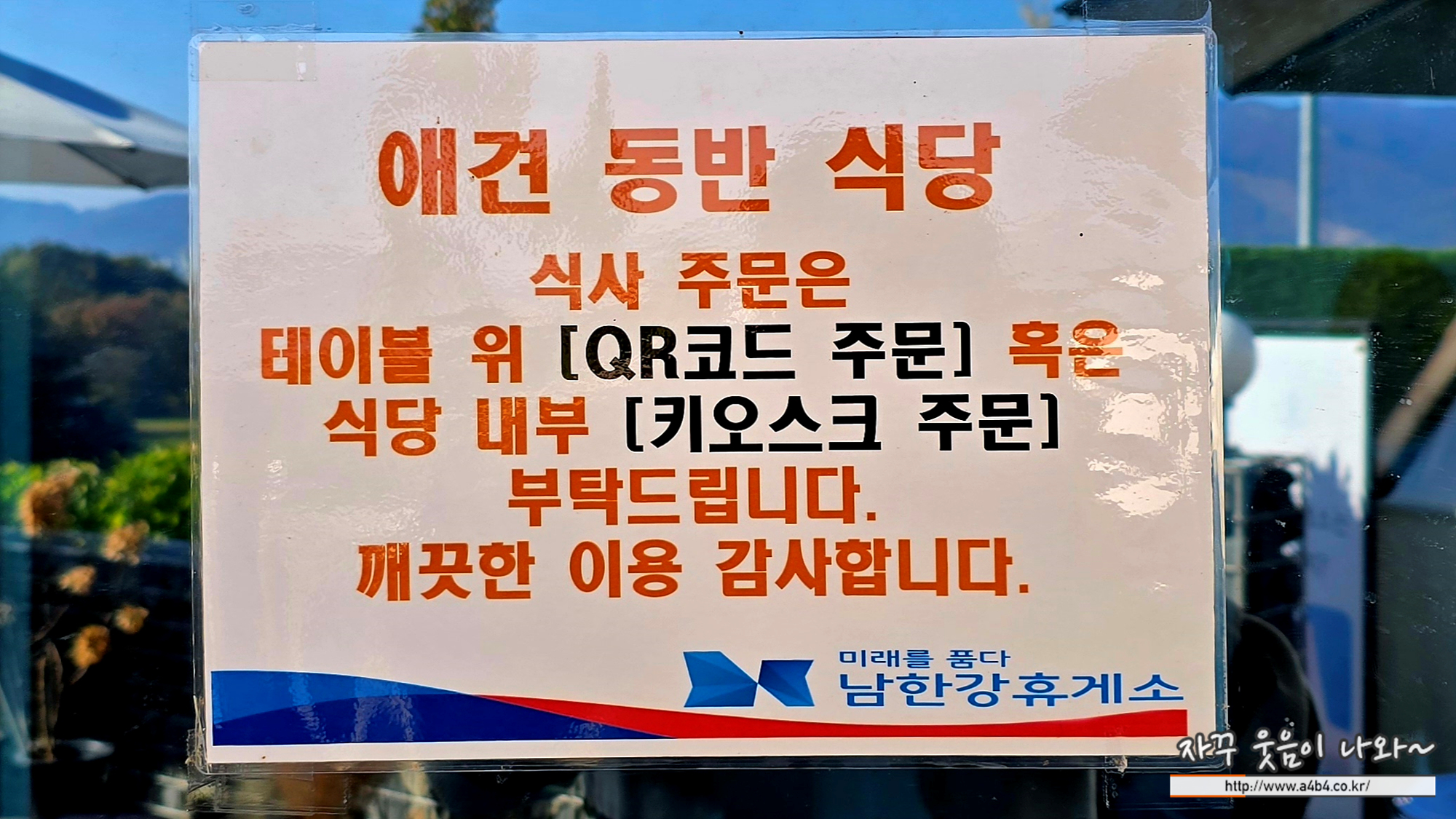 남한강휴게소 음식 주문은 식당에 부착된 QR코드 인식하고요.