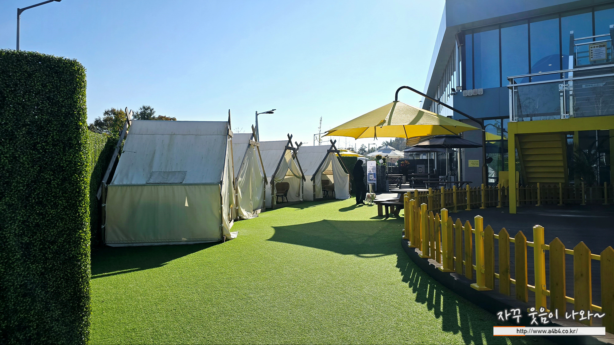 우선반려견 동반 공원이 있는데요. 여행중에 강아지와 함께 산책과 휴식, 식사가 가능한 휴게소 입니다. 특히 자가용으로 장거리 여행을 하다보면 사람은 물론 강아지도 피곤한데요. 이런 강아지 고속도로 휴게소는 정말로 반가운 일입니다.