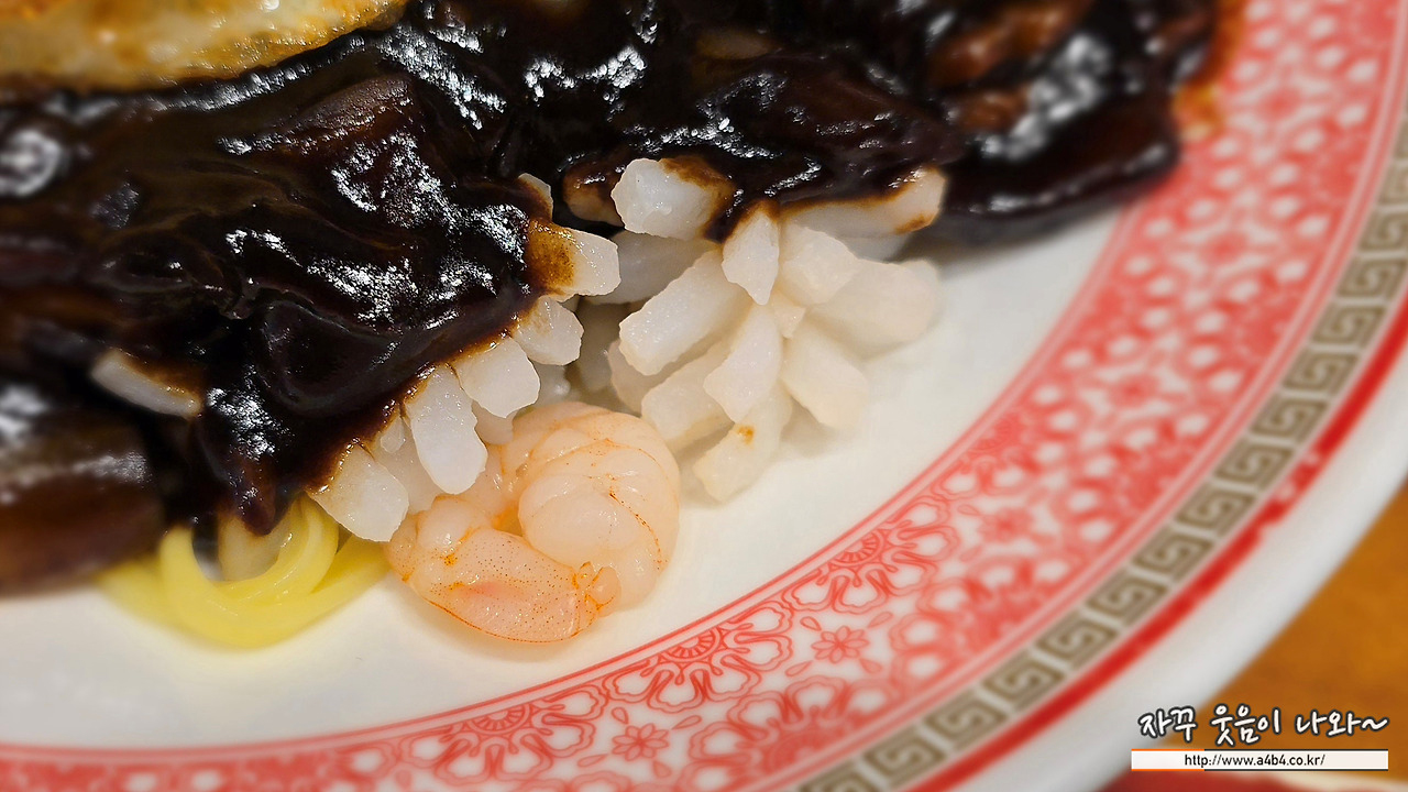 간짜장 위에 계란 프라이 하나 올려있네요.