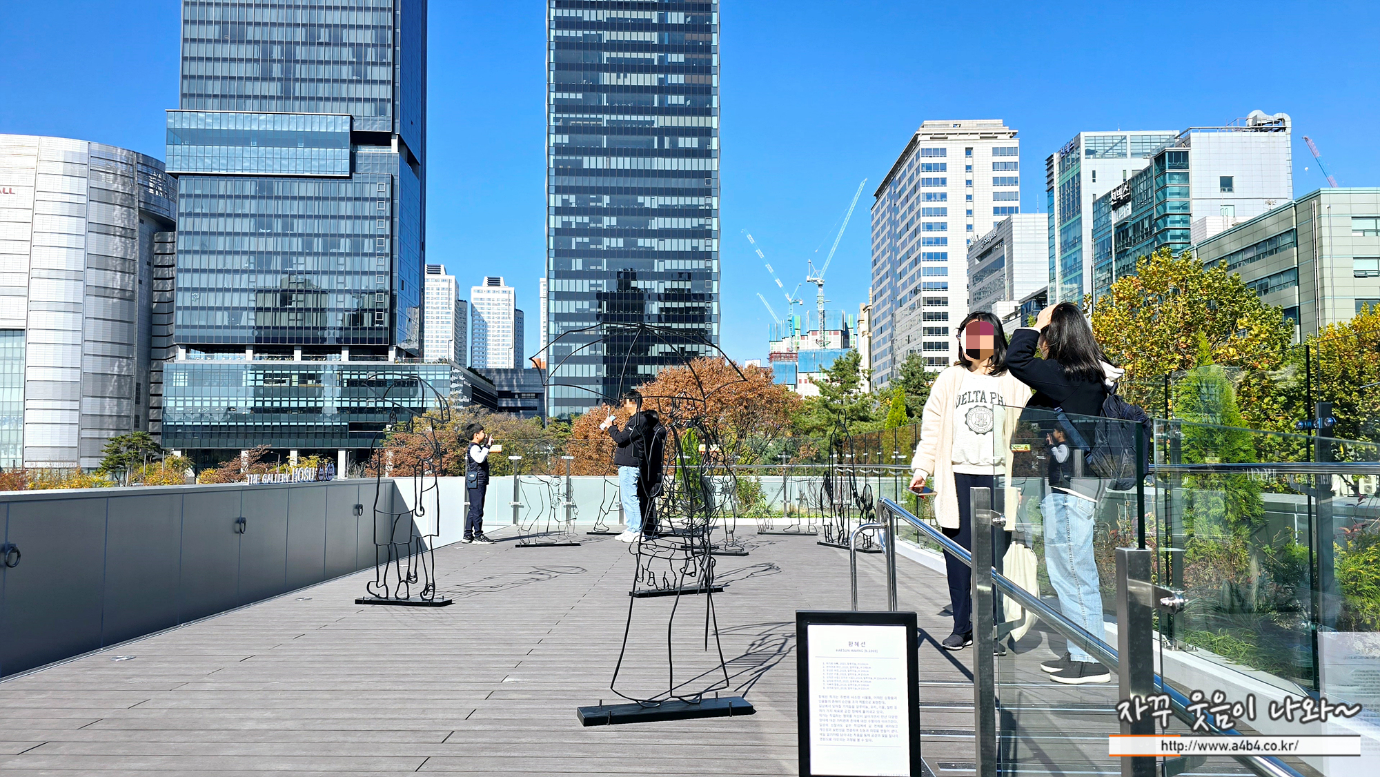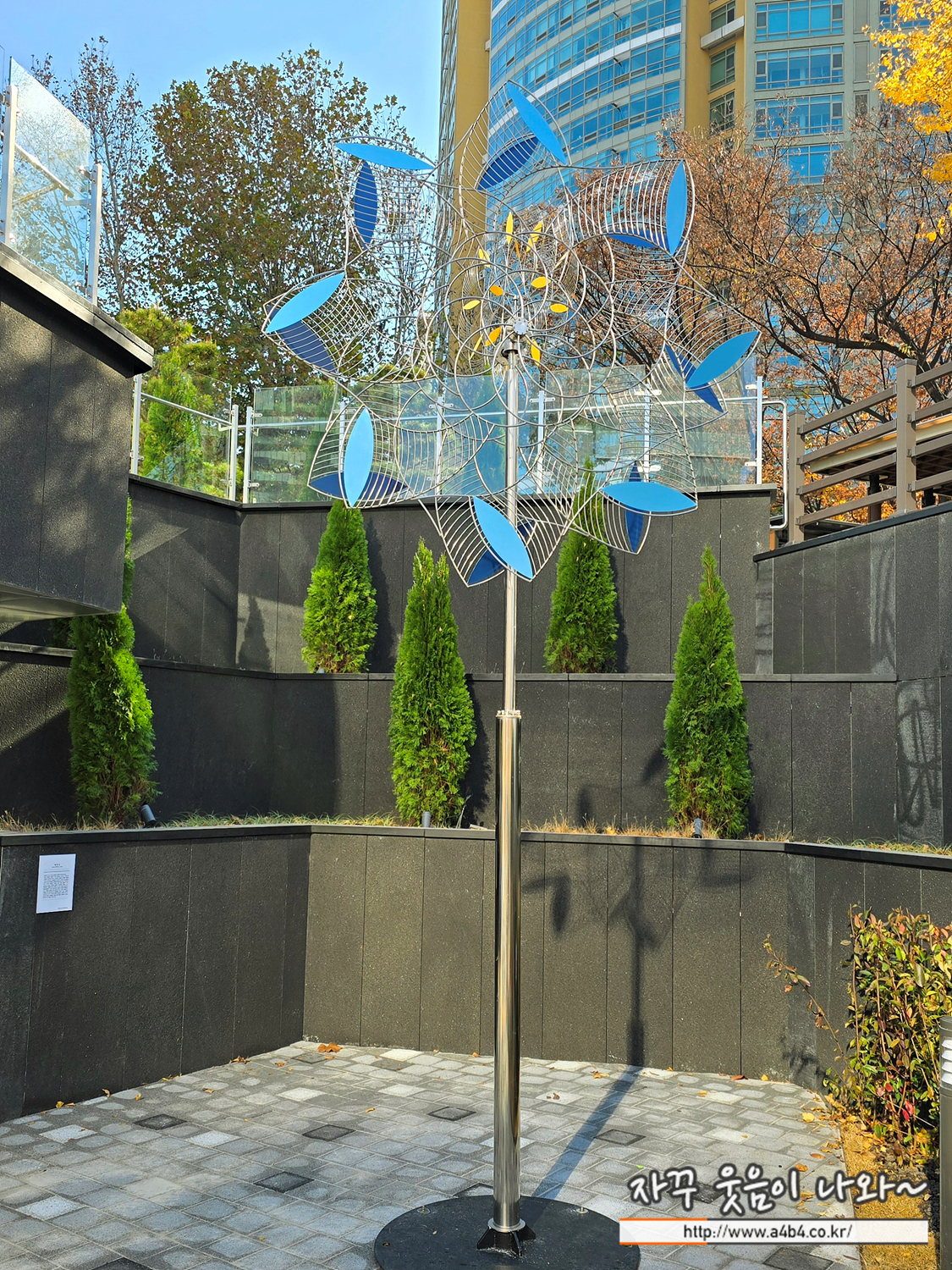 잠실 더 갤러리 호수 옥상정원에 전시되어 있는 작품은요? 황혜선 작가의 작품입니다.