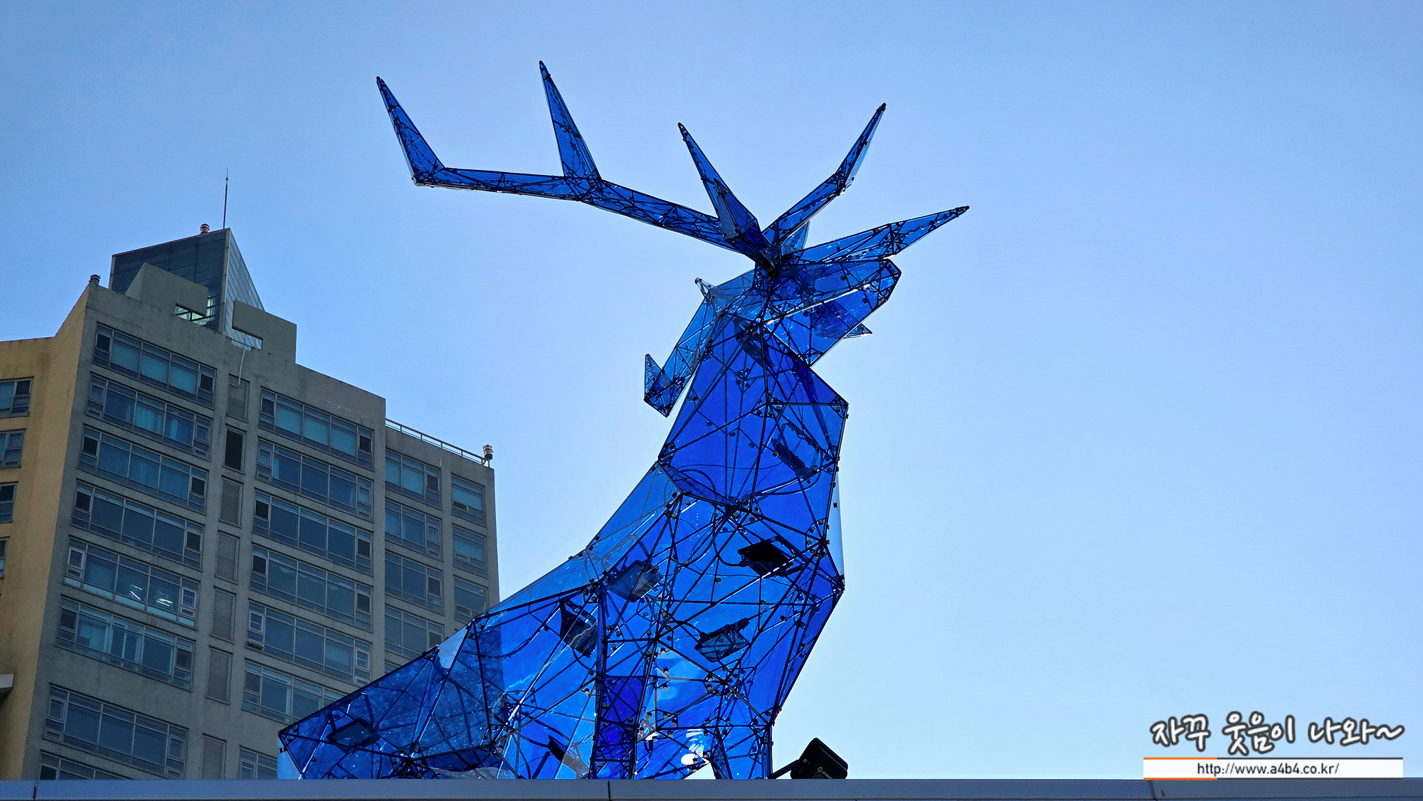 먼저 건물 맨 위에 보이는 푸른색 거대한 사슴 한 마리가 보입니다. 작품 제목은 ' Quadruped (네발짐승)'