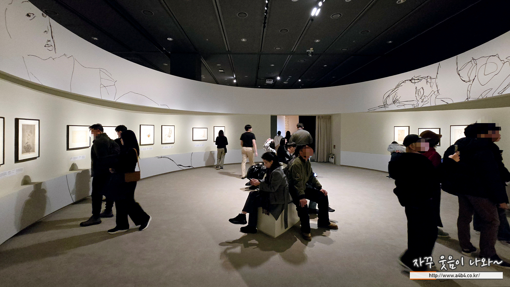 전시장 안에는 1실과 2실 사이 에곤실레의 작품현수막을 배경으로 많은 분들이 기념사진 남기시네요.