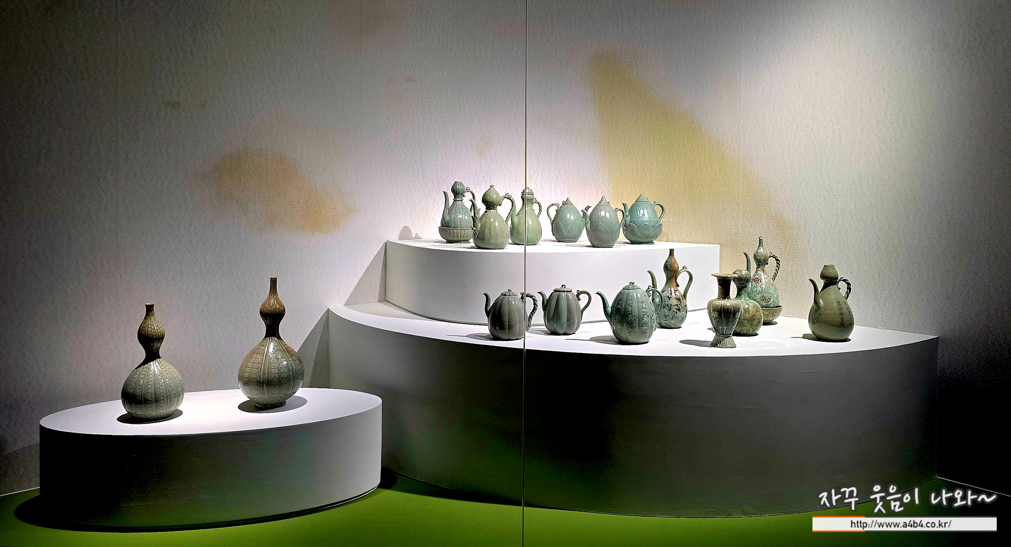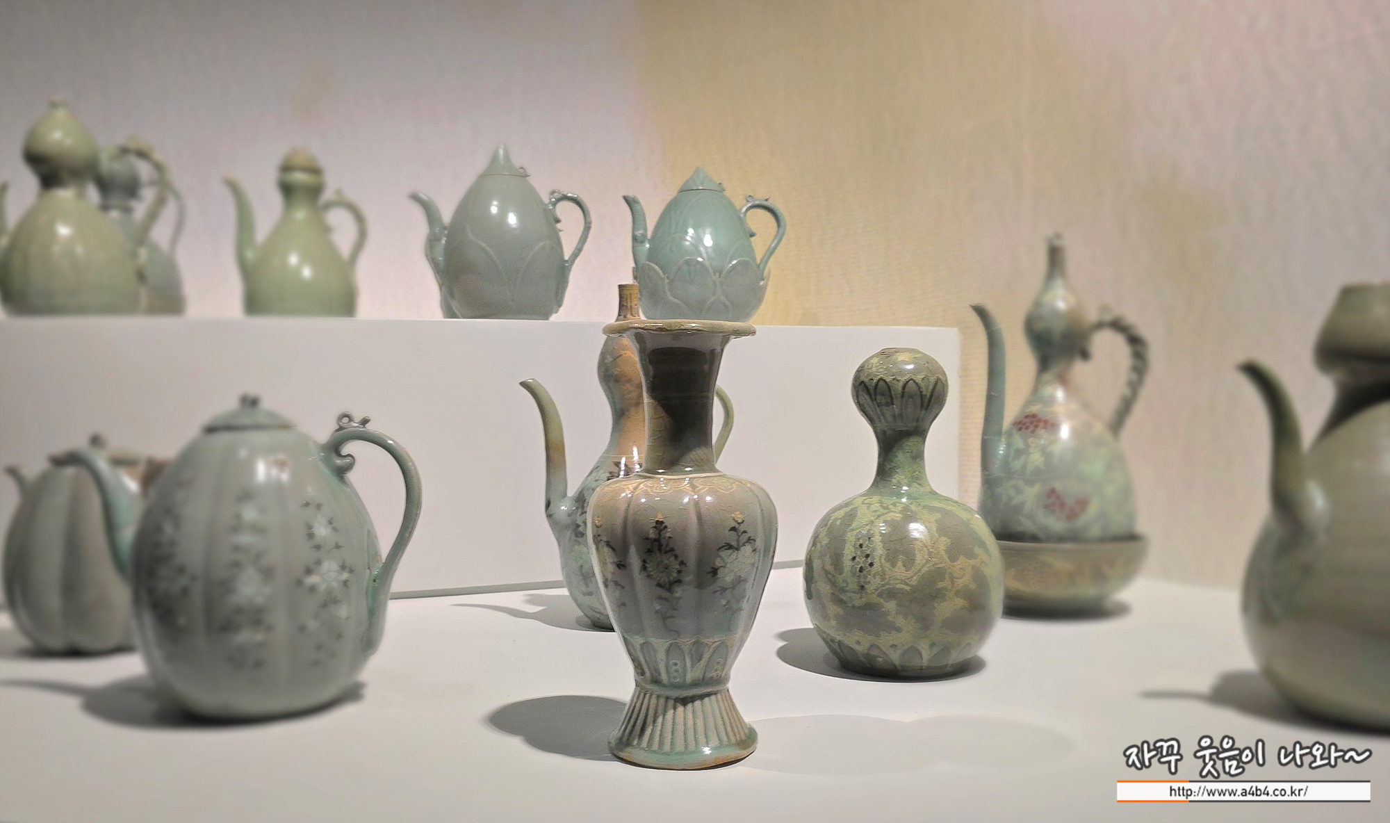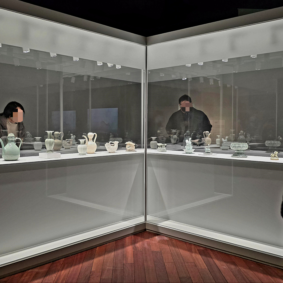 여기는 국립중앙박물관 '푸른 세상을 빚다, 고려 상형청자' 전시회에서 조금 더 고급진 청자들이..